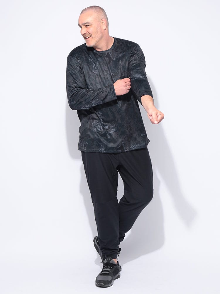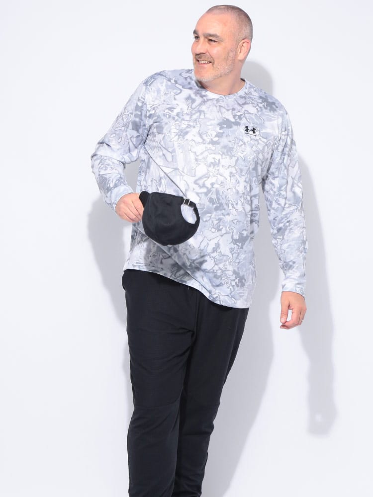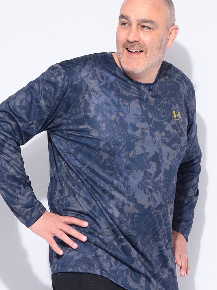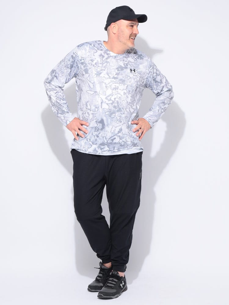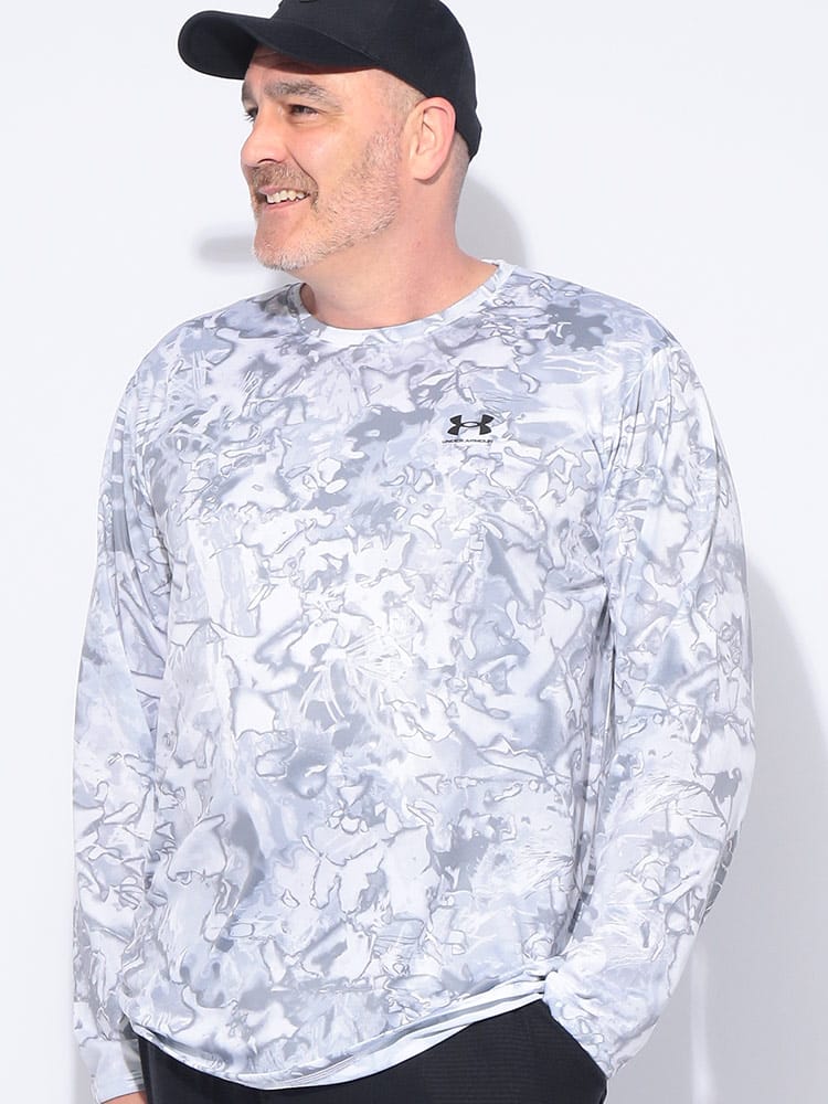 LOOSE 総柄 クルーネック 長袖 Tシャツ TECH LS PRINTEDは、快適な着心地とスタイリッシュなデザインを両立させた一枚です。独自のUAテック素材が汗を素早く吸収・発散し、常にドライで快適な状態を保ちます。ゆったりとしたルーズフィットは動きやすく、トレーニングから普段使いまで幅広いシーンで活躍。総柄のデザインが個性を演出し、一枚でコーディネートの主役になります。