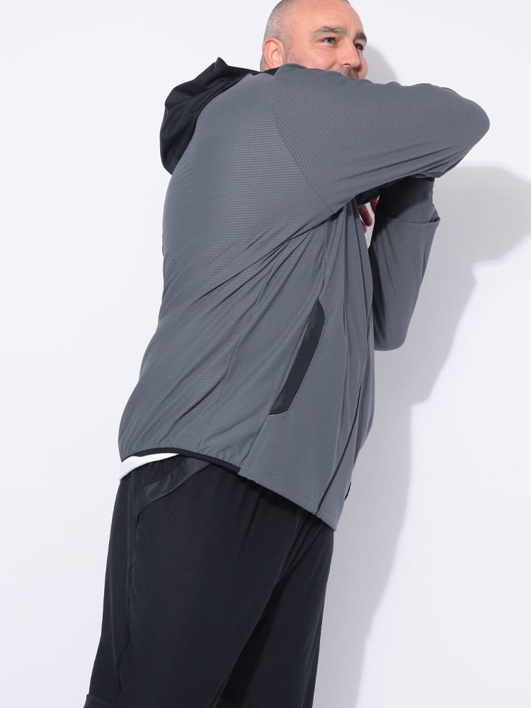 FITTED 切り替え フルジップ パーカー MOTIVATE RIB HYBRID HDは、トレーニングを次のレベルへと引き上げる一着です。体にフィットするFITTEDシルエットが動きやすさとスタイリッシュさを両立し、独自の切り替えデザインがダイナミックな印象を与えます。吸汗速乾性に優れた素材が、激しい運動中もドライで快適な状態をキープ。フードとフルジップ仕様で温度調節も容易です。