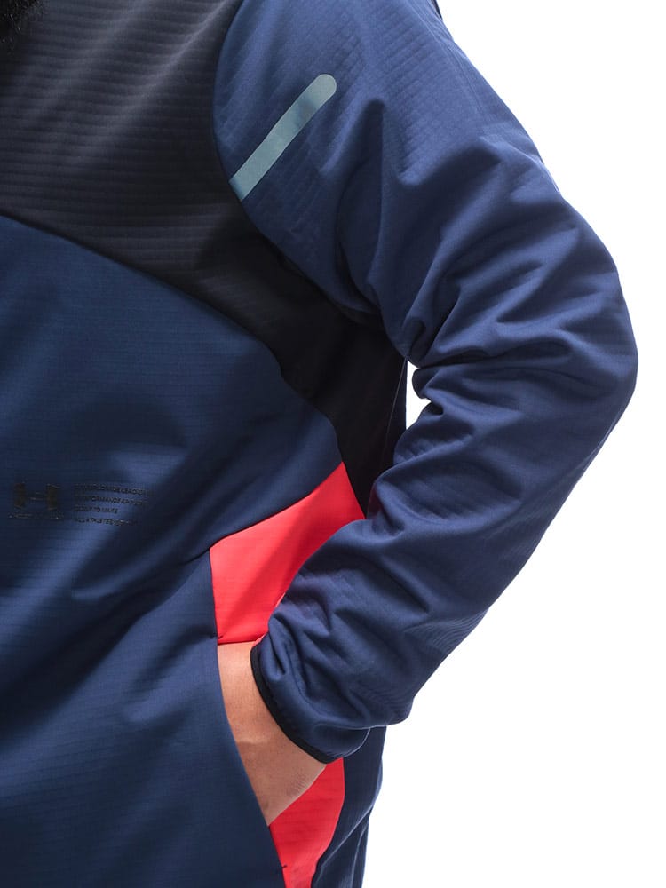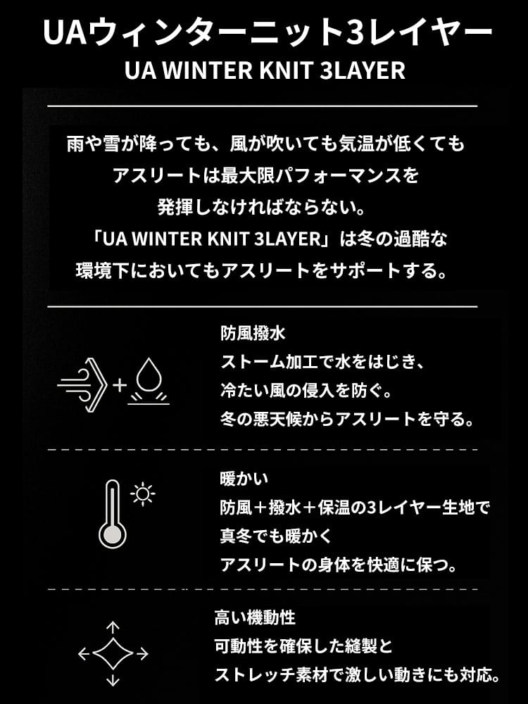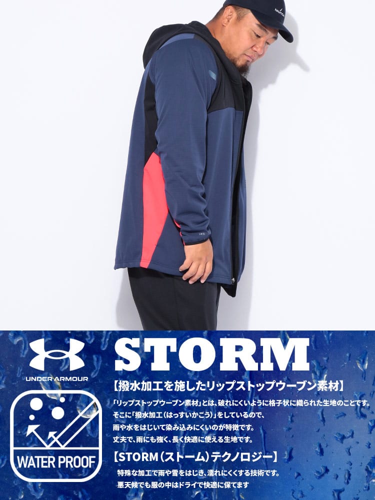 冬の過酷なトレーニングを支える、完璧な三層構造! UNDER ARMOURから、悪天候に負けない高性能フルジップフーディーが登場です。この一着は、防風性・撥水性・保温性を兼ね備えた3レイヤー(三層構造)を採用。独自のUA Storm撥水加工が雨を弾き、防風機能が冷たい風をシャットアウトします。内側は裏地フリースで、優れた保温性を発揮します。さらに、ストレッチ性と吸汗速乾性というスポーツウェアに欠かせない機能も搭載。汗冷えを防ぎながら、ダイナミックな動きにもFITTED(フィット)して追従します。大きいサイズでもシャープに見えるシルエットで、2つのポケット付き。悪天候下でもパフォーマンスを追求するアスリートのための、究極のウィンターギアです!