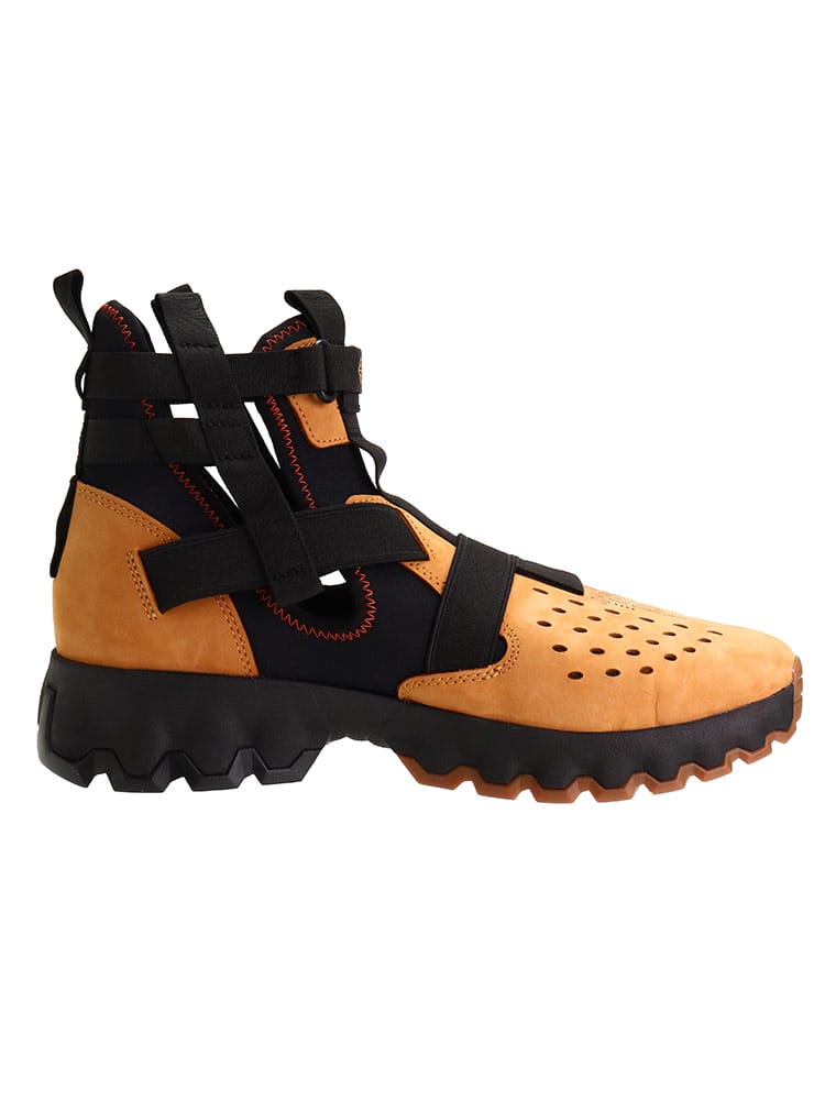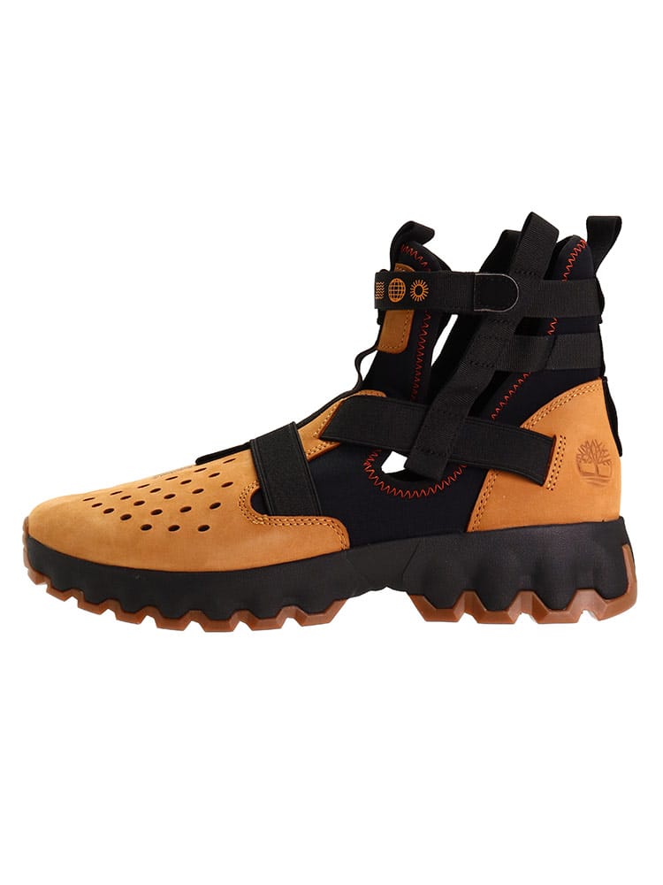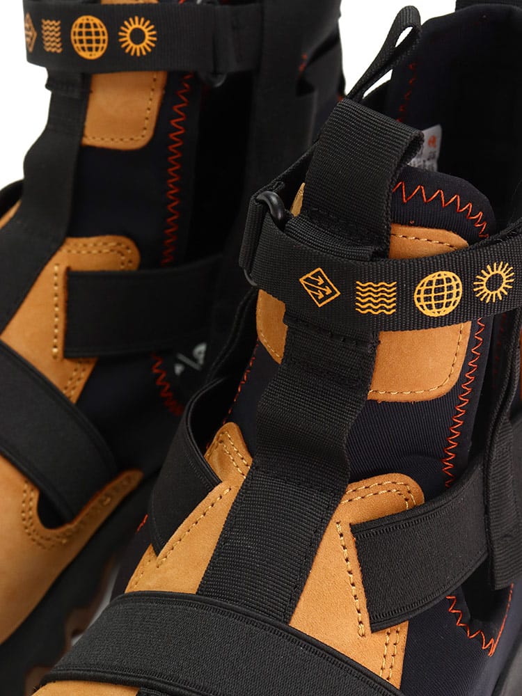 シューズからウェアまで、アウトドアアイテムを幅広く展開するティンバーランドのブーツ サンダル Edge boots Sandalです。一見、トレッキングブーツのようなシルエットながら、非常にシャープなラインが特徴的なブーツサンダル。ベルクロストラップとゴムバンドを使用しているので、スムースな脱ぎ履きができるのが魅力。ボディにはヌバックレザーを使用しているので、上質感のある一足となっています。