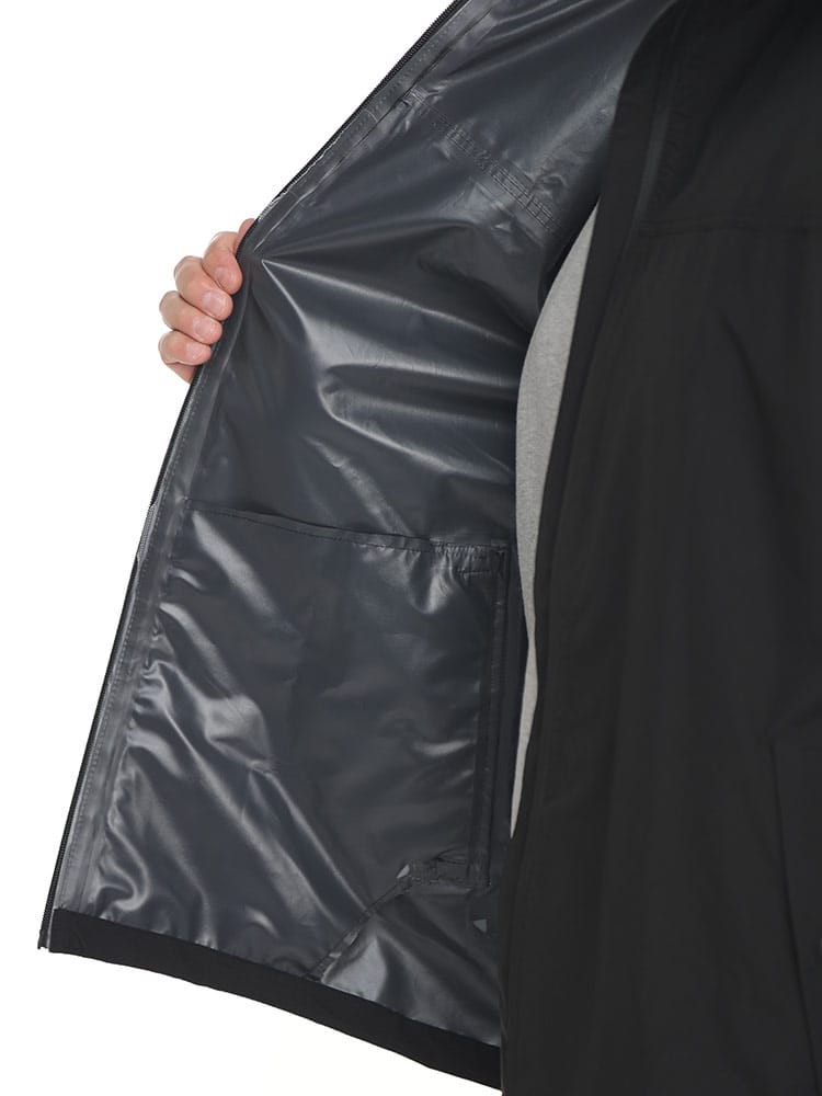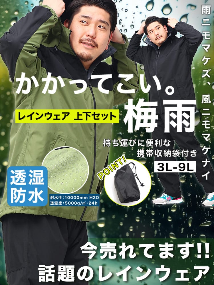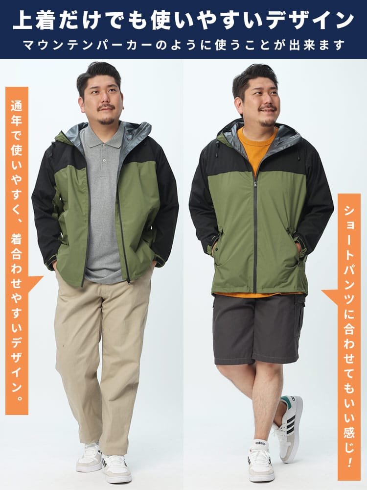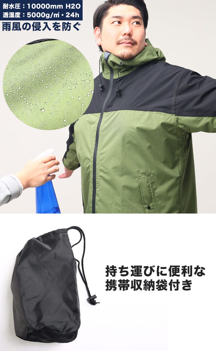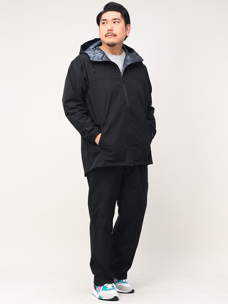仕様 :トップスポケット×2つ / シングルジップ / ウエスト調節ゴム / 前閉じ / 止水ファスナー / 携帯収納袋付き / ストレッチ / 防水
