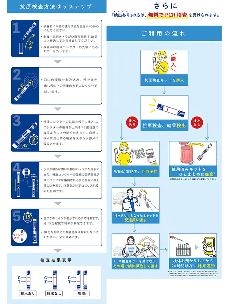 衛生用品のため返品は不可とさせていただきますので予めご了承くださいますようお願いいたします。※この商品に関するお問い合わせ先<製造販売元>株式会社 東亜産業〒101-0021 東京都千代田区外神田2‐5‐12URL:https://toamit.jp/<お客様相談室>TEL:0120-910-951受付時間/年中無休24時間※陽性だった場合は東亜産業のPCR検査センターにて無料で検査を受けられます。詳しくは商品に記載されているQRコードからご確認ください。または詳しくは東亜産業ホームページをご確認ください。