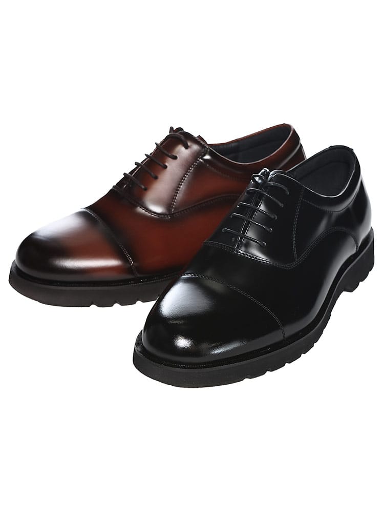 浅草で製造された撥水加工を施した本革使用の内羽根ストレートチップシューズ。厳選された天然皮革が発汗による靴内部の湿気を外に発散し、ムレを少なくします。クッション性を極限にまで高めたことにより、履き心地は柔らかく、長時間の着用時にも足への負担を軽減します。超ワイドな6Eの木型を採用。オーソドックスなデザインで、幅広いビジネスシーンに活躍します。