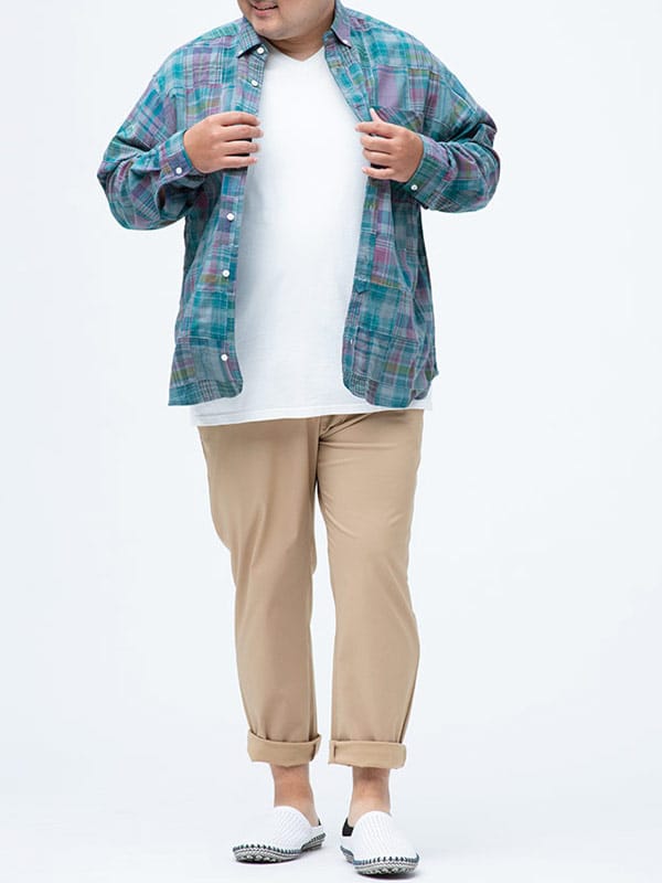身長:178cm / 体重105kg / B:113 / W:105 / H:108 / S:28.0cm 着用サイズ:X1(3L~4L相当)