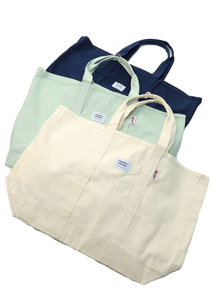 使い勝手の良い厚手で丈夫なキャンバストート。PARROTT CANVASのブランドを象徴する”CLASSIC CANVAS”11号帆布を使用。収納容量の大きい定番トートバッグ。どんなスタイリングにも邪魔しない、ラフに使える。使うほど馴染む、帆布独特の風合は気分によって色を変えて使うのも〇。高密度な平織り生地で、耐久性と、やわらかくナチュラルな印象が特徴です。11号帆布は薄手で扱いやすく、日常的にご使用いただけます。使うほどに馴染み、風合いがまし長く愛用したくなる素材です。