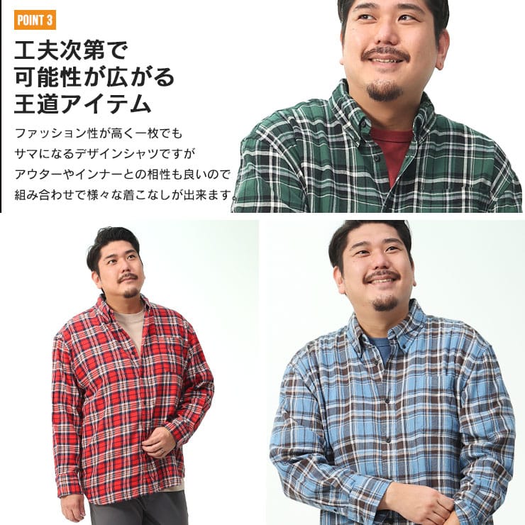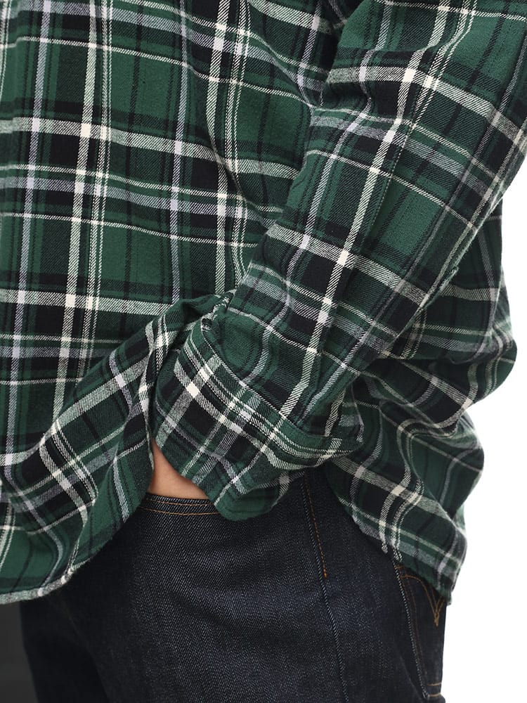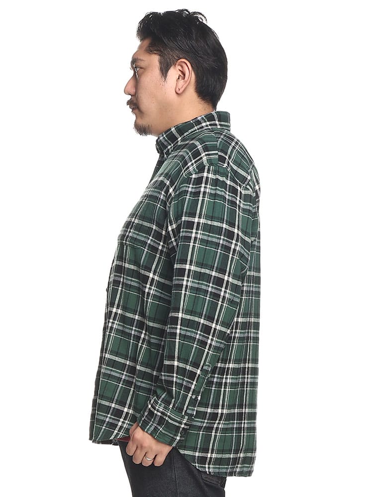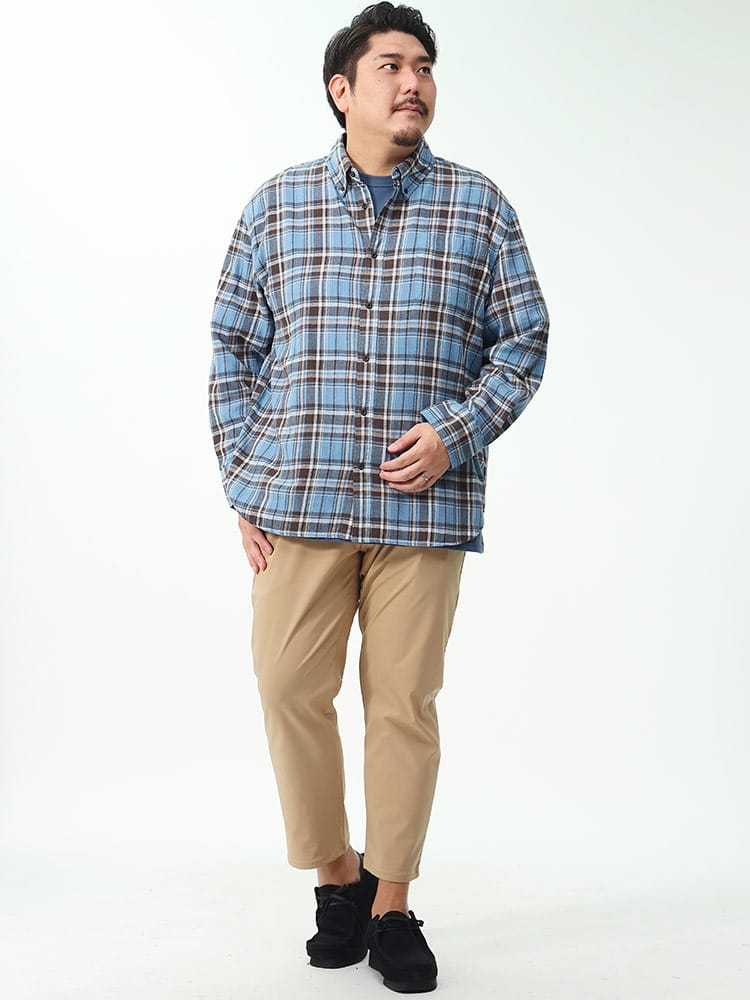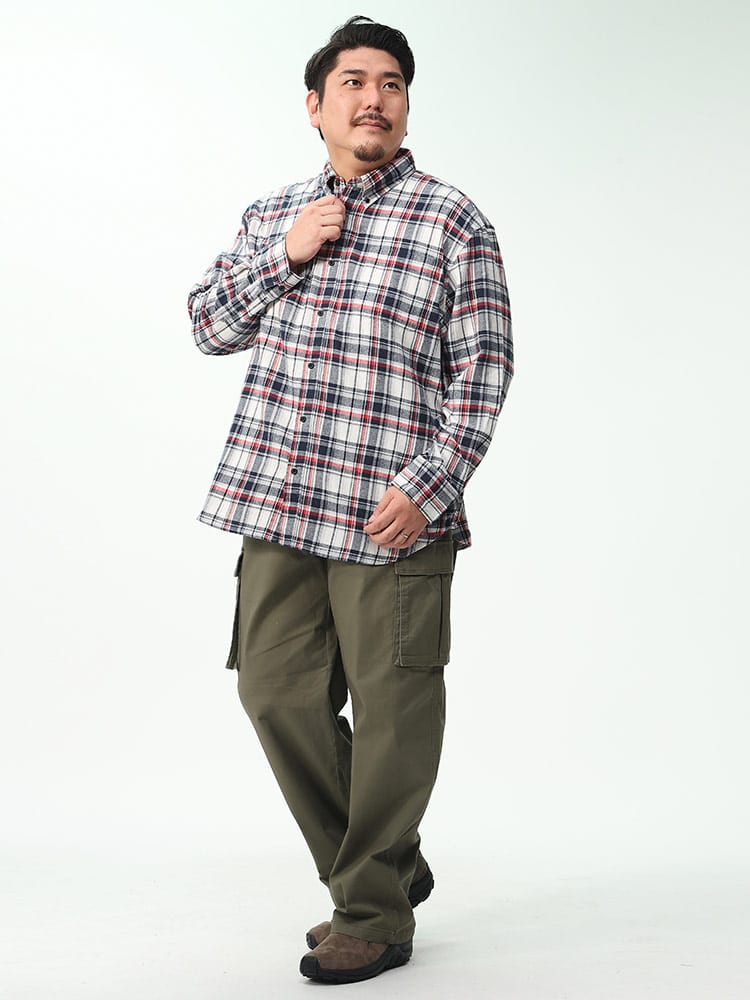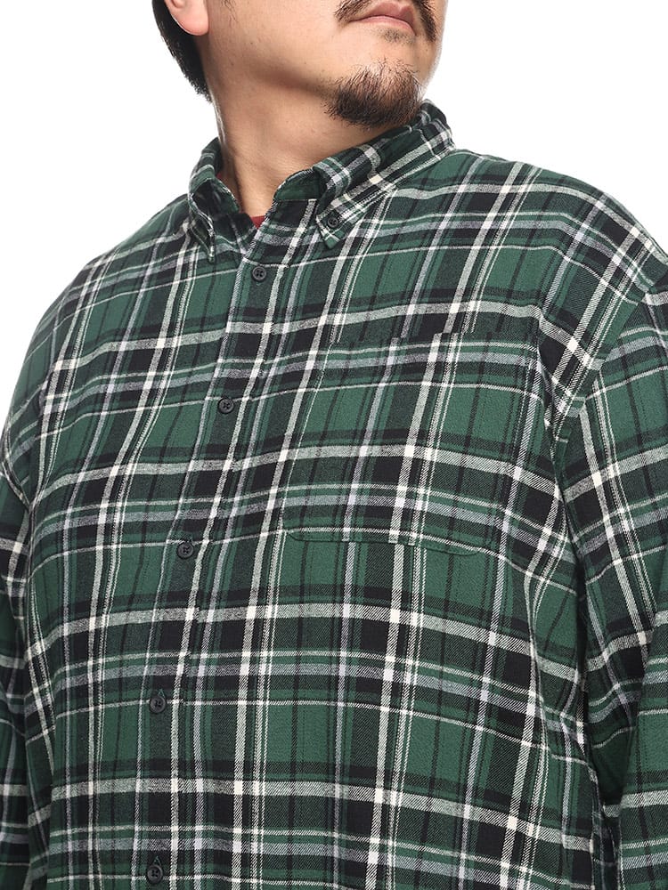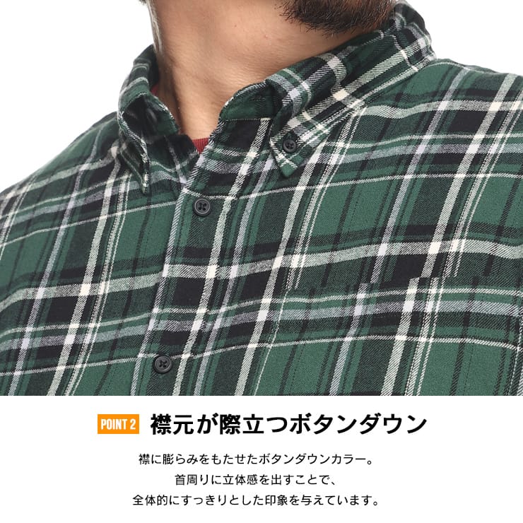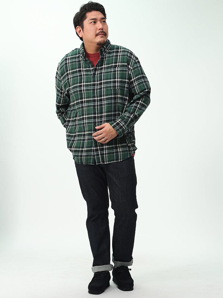 B&T CLUBのフランネルシャツは、綿100%の素材で、ソフトな肌触りと快適な着心地を提供します。温かみのあるフランネルは、冷える季節に適した選択で、耐久性も抜群です。綿の持つ自然な風合いが、シャツのチェックデザインを一層際立たせます。ボタンダウンのカラーが、カジュアルながらもきちんとした印象を持たせ、多様なスタイリングに対応します。