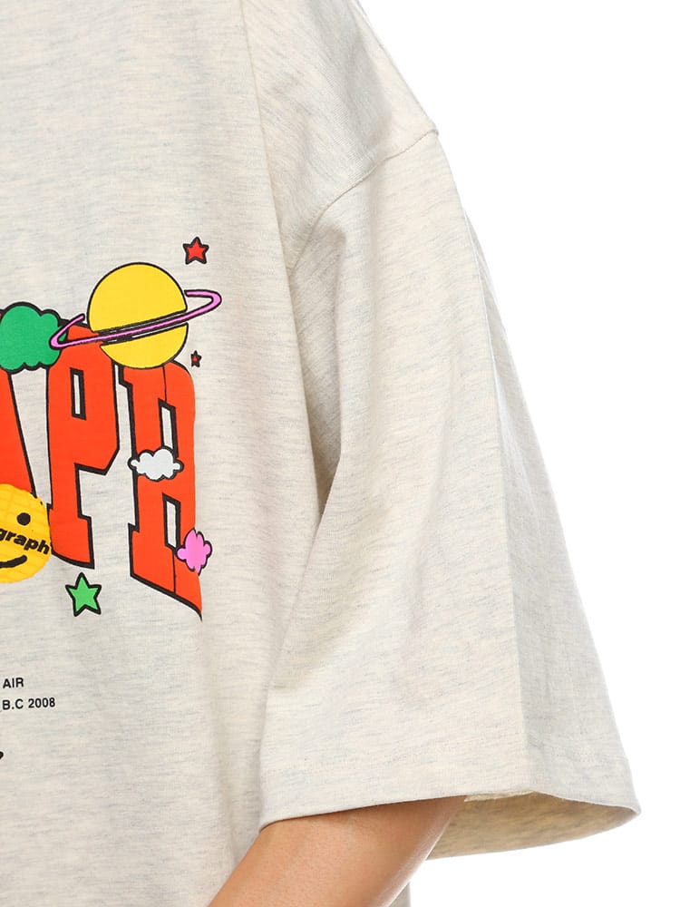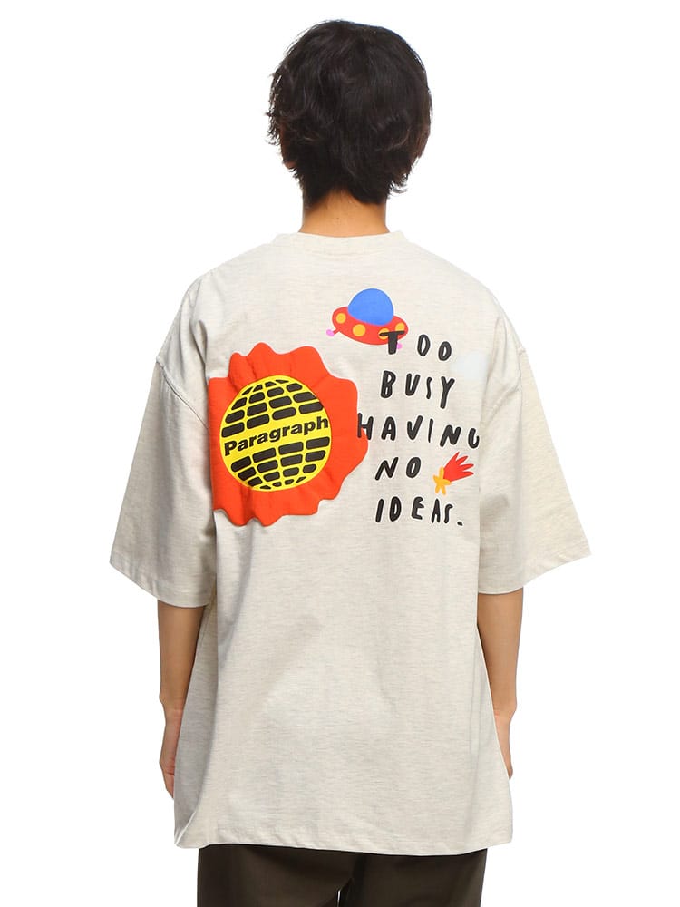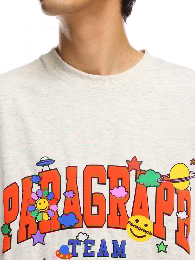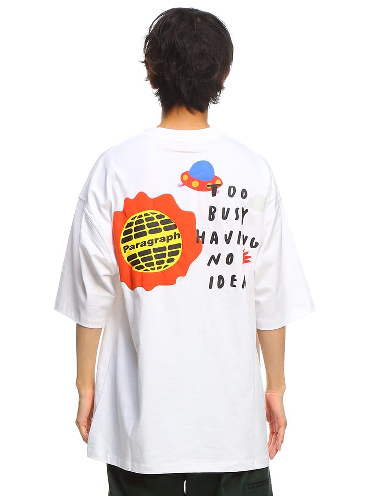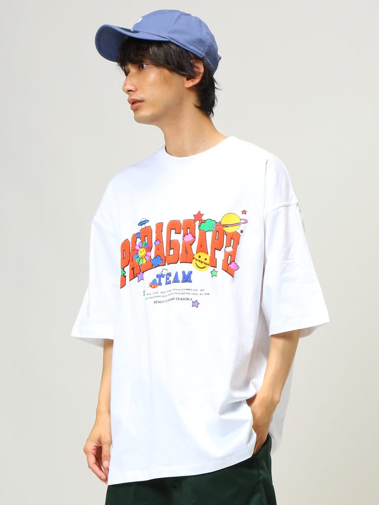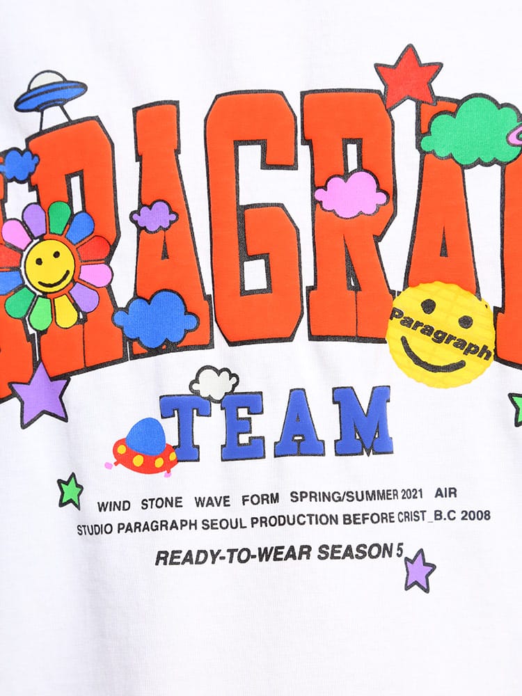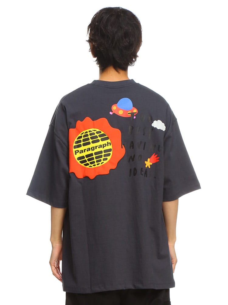Paragraph(パラグラフ)のバックプリント クルーネック 半袖 Tシャツ HAPPY T-SHIRT。フロントとバックに大きくロゴをプリント。フロント左裾にロゴワッペンを刺繍。生地にはしっかりとしたコットン生地を使用。首元はベーシックなクルーネックデザイン。ストリートシーンで注目されること間違い無しな一枚です。