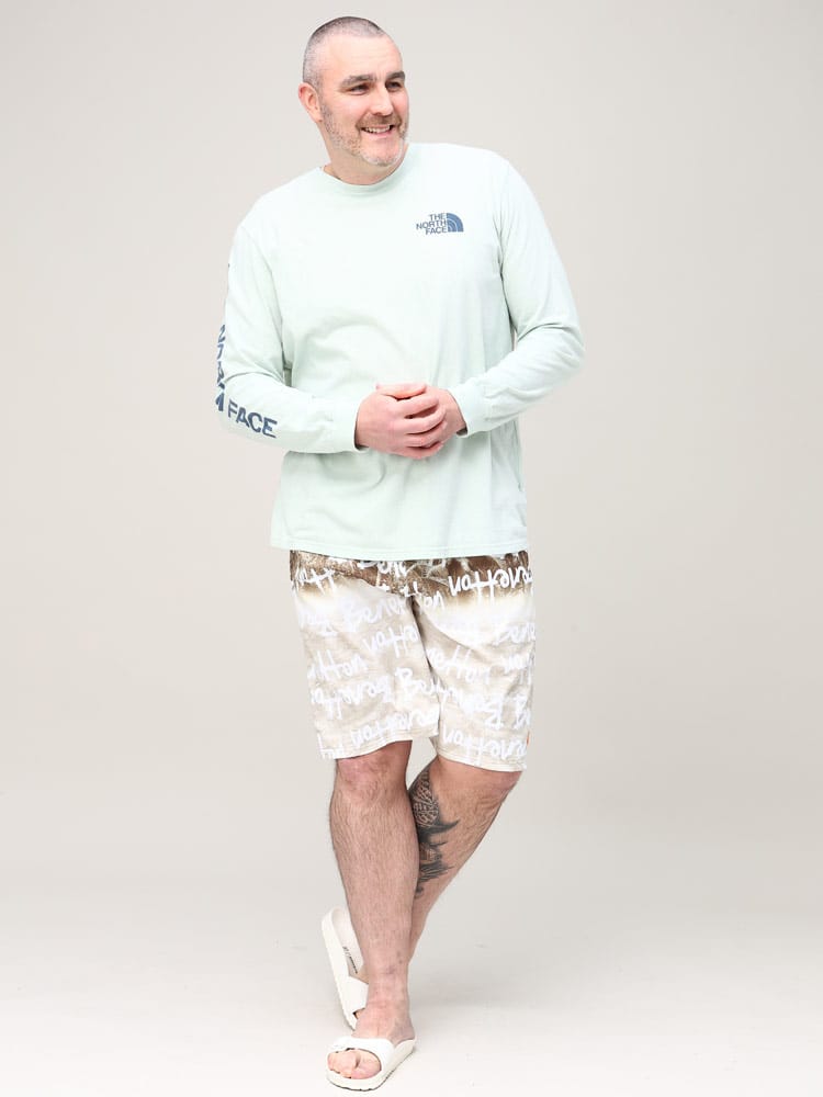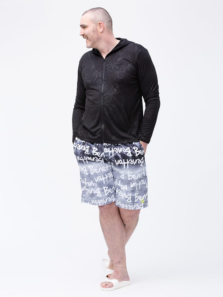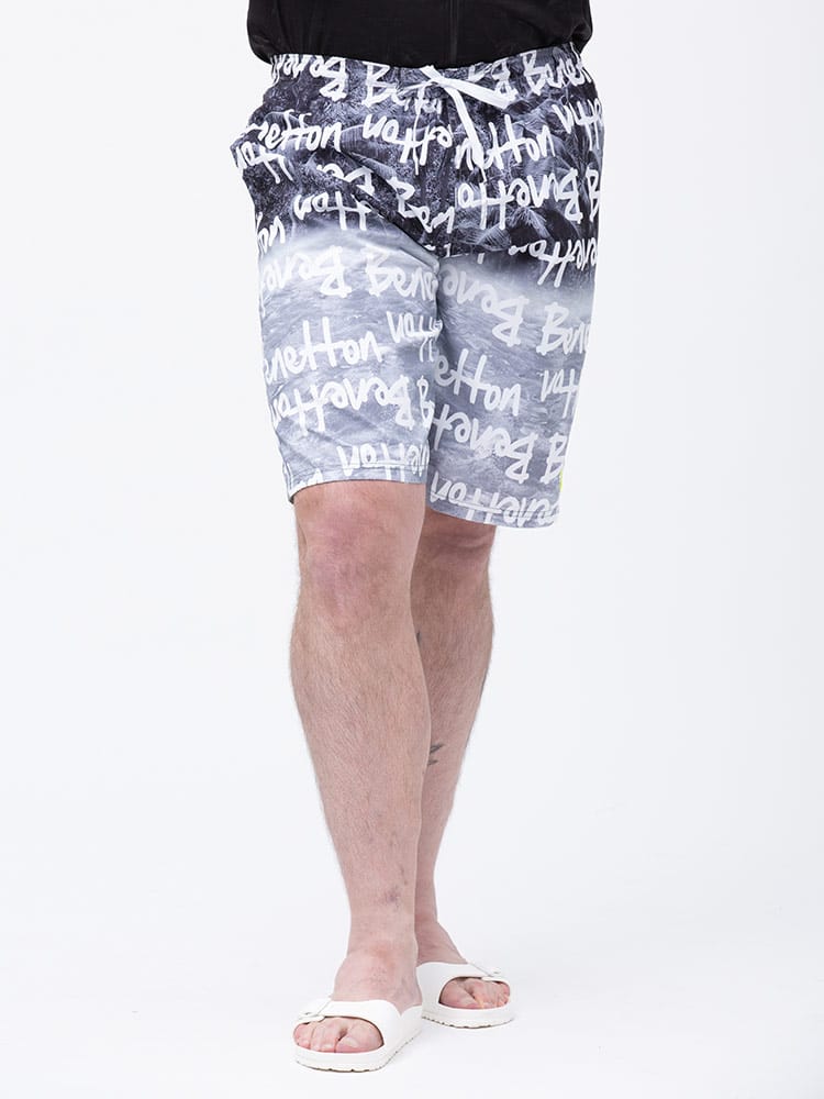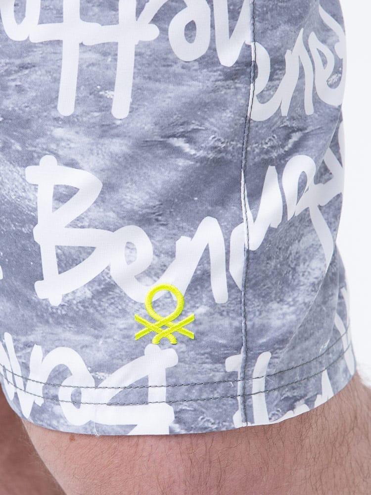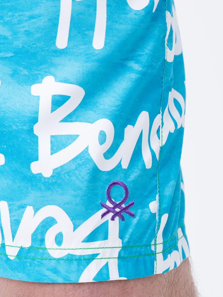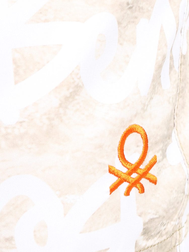 ウエストコード付きでイージーな履き心地のUNITED COLORS OF BENETTON.の総柄 スイムトランクスです。総柄デザインでインパクト抜群。ウエストはゴムとドローコード付きでサイズ調整出来ます。左裾にロゴ刺繍。メッシュインナー付き。マリンレジャーやマリンアクティビティにおすすめのアイテムです。