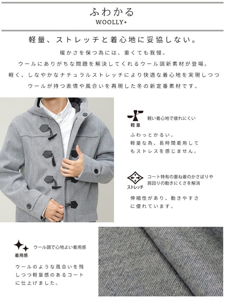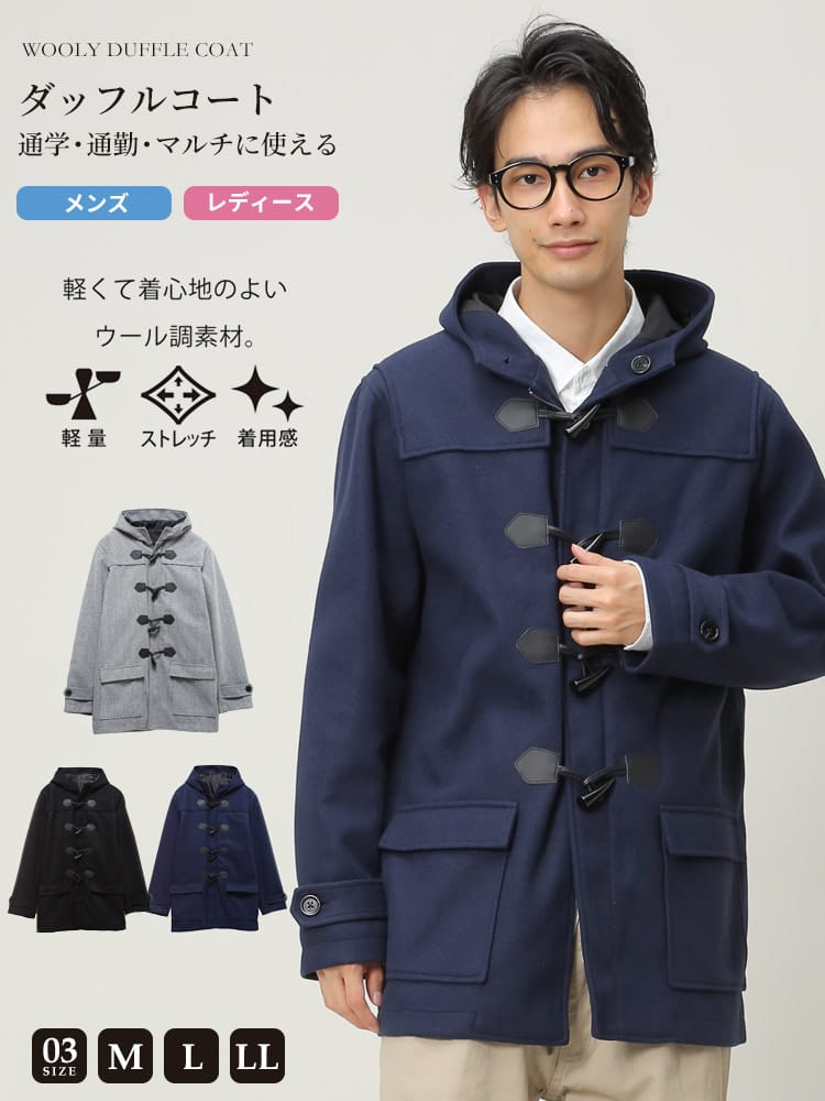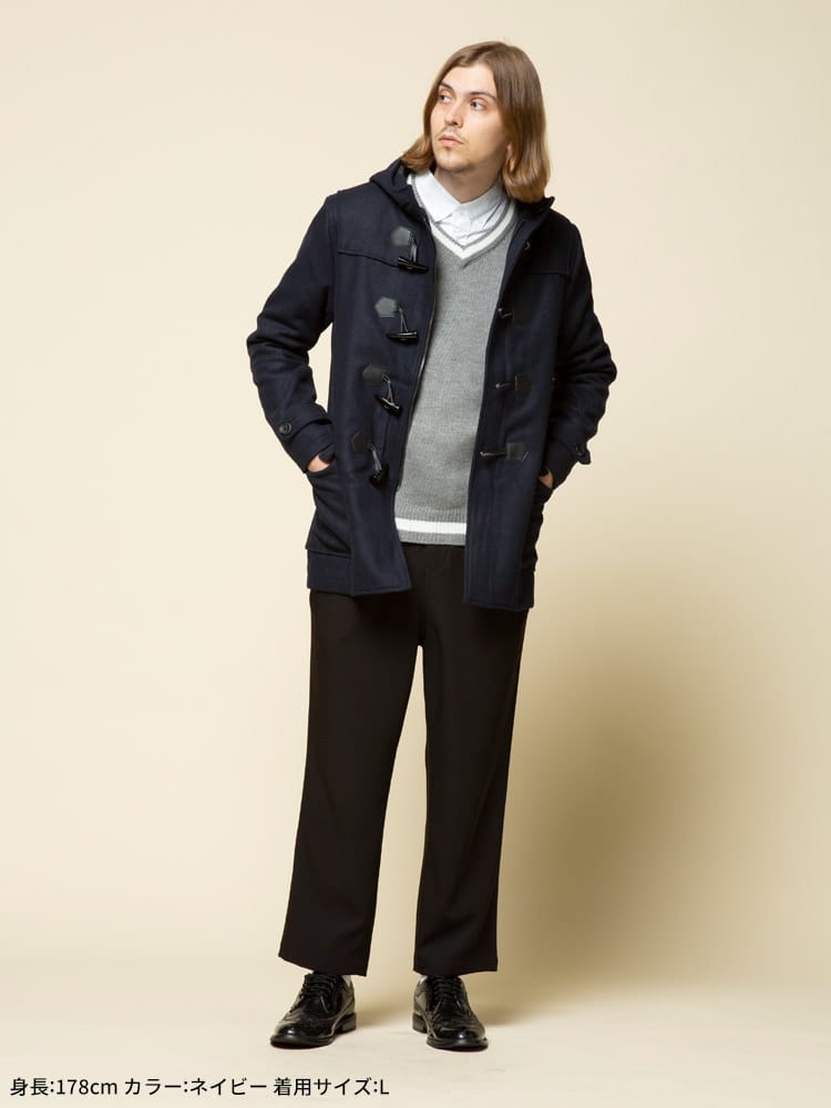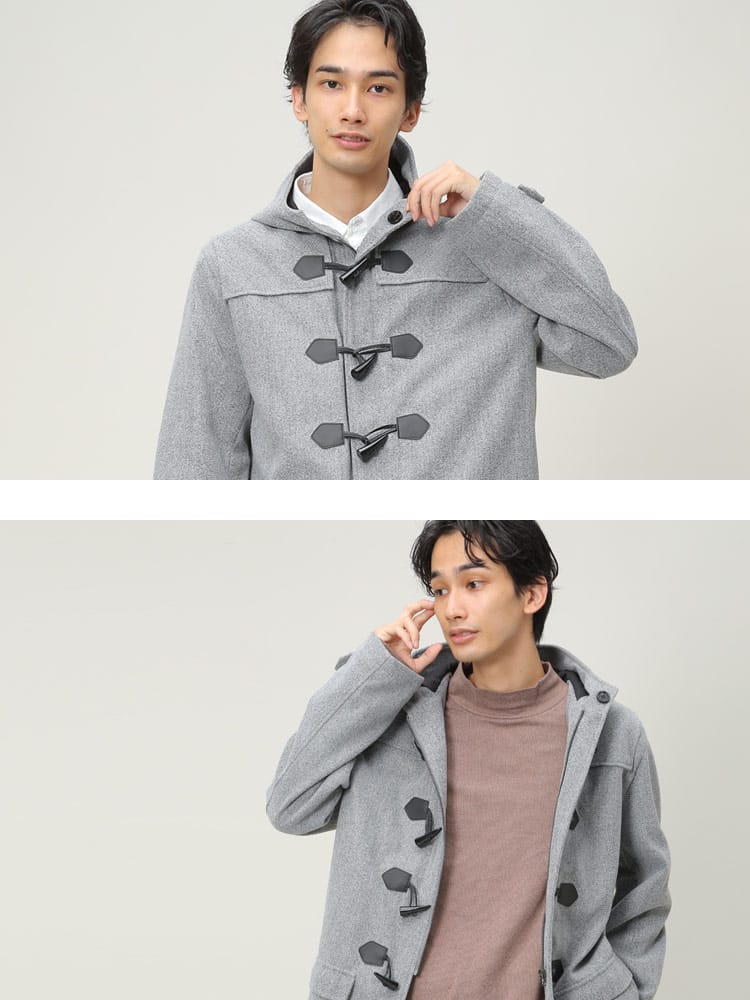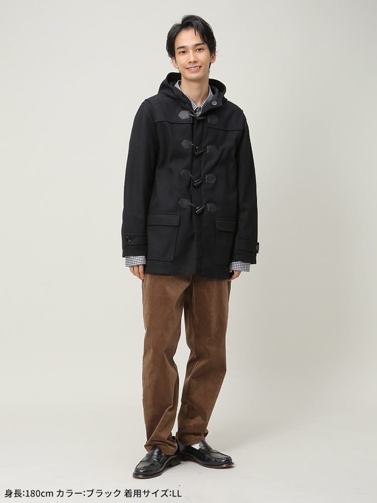 アウターの定番のダッッフルコートです。無地でキレイなシルエットでお洒落に決まります。シンプルなカラー展開なのでどんなコーデでも合わせやすいのも魅力です。これからの季節のアウターとしていかがでしょうか。
