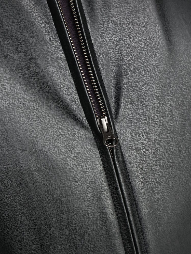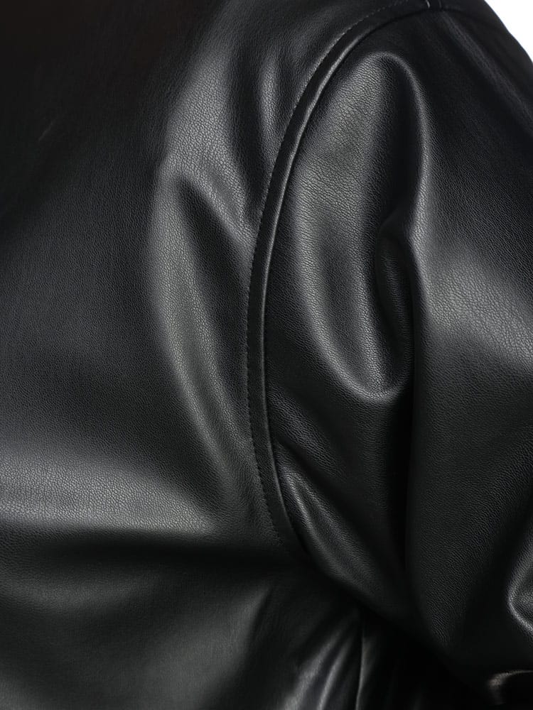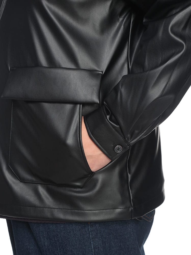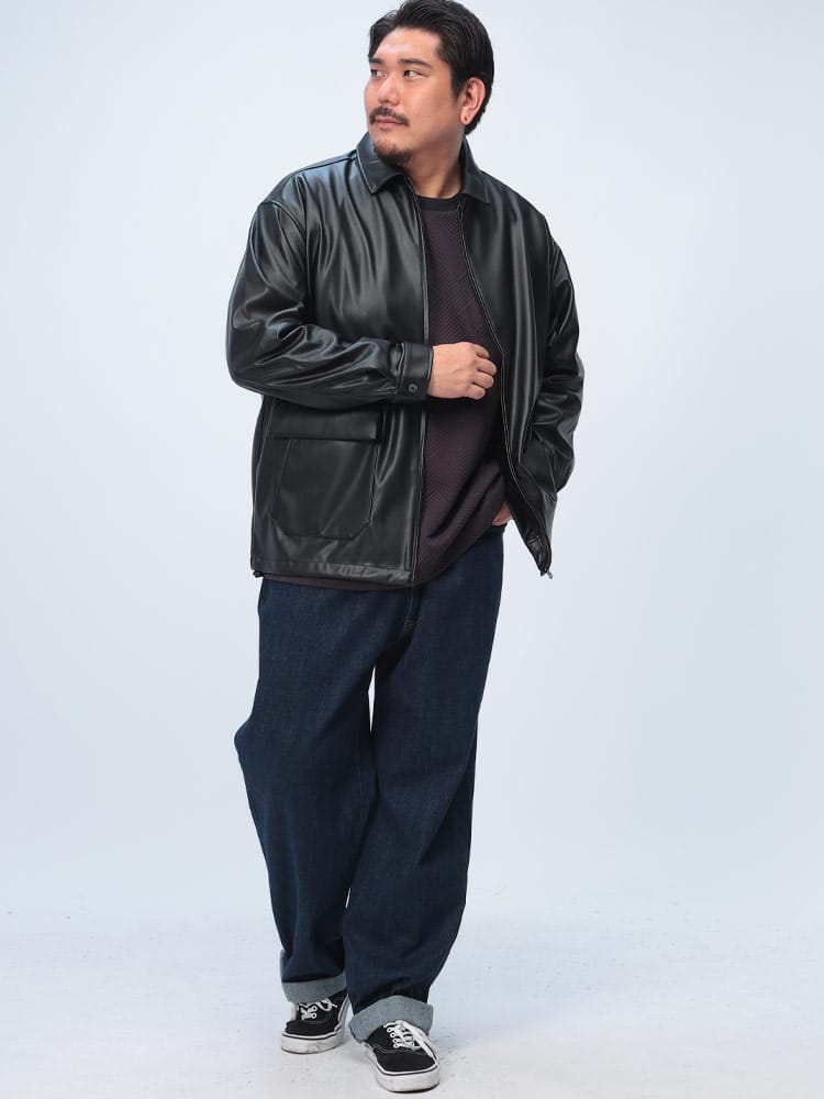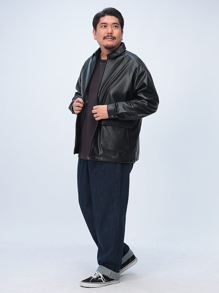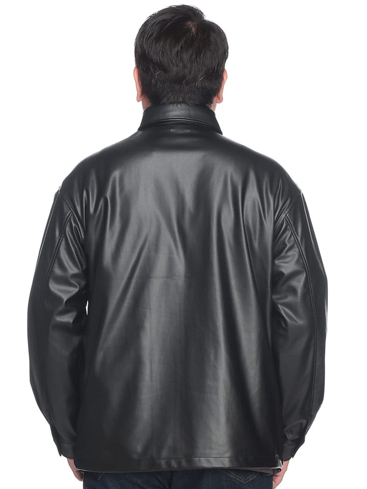 シンプルでスタイリッシュなデザインのスイングトップジャケットです。合成皮革素材ながらも高級感を感じさせつつ、軽量で動きやすく快適な着心地となっています。カジュアルにもフォーマルにも合わせやすく、幅広いシーンで活躍する一着です。