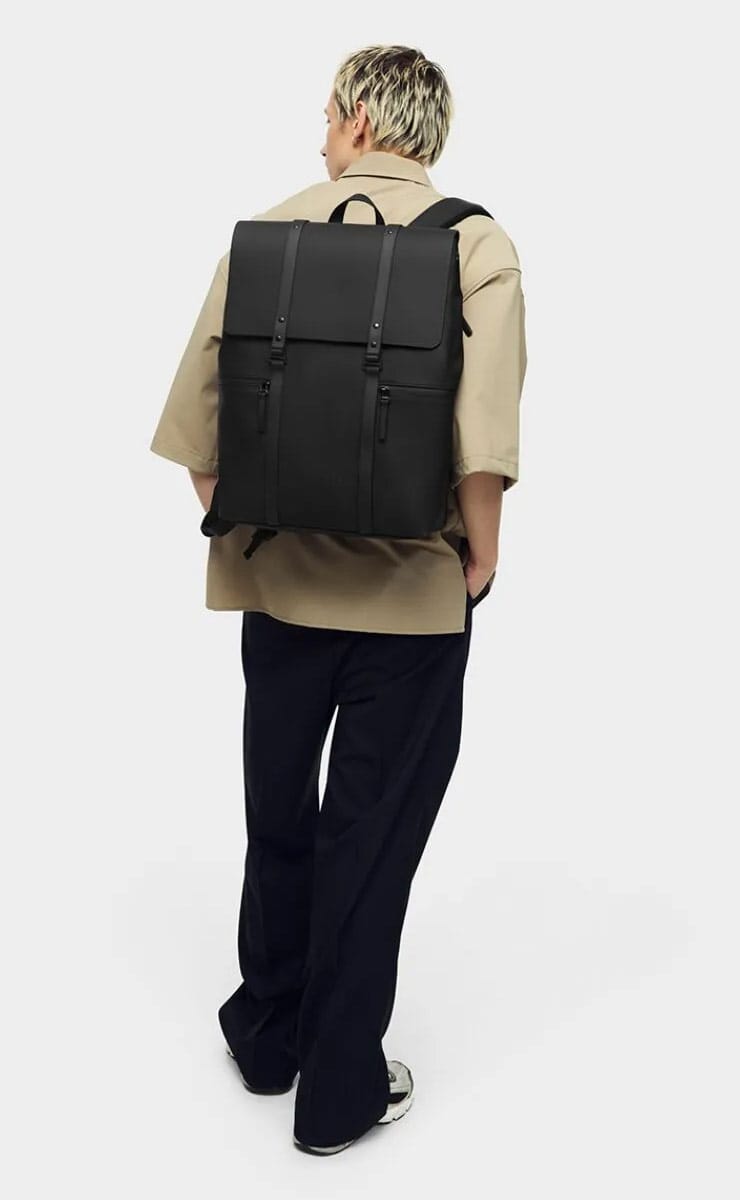丈夫で防水性のある、より持続可能な素材にリデザインされた"Splash"バックパック。なめらかなダブルストラップフラップクロージャーにより、すべての持ち物をしっかりとメインコンパートメントに収納し、16インチのノートパソコン、ノート、必要なものが全て入ります。現代的なスタイルと機能的なフォルムは、街探索に最適です。