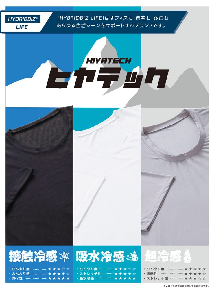 | 夏シーズンの強い味方『ヒヤテック』シリーズ 大人気インナー「ヒヤテック」の機能を活かしたトップスが登場。 ヒヤテックらしい接触冷感に加えて通気性など爽快感のある暑い季節におススメのシリーズです。 >> 特設ページはこちら |