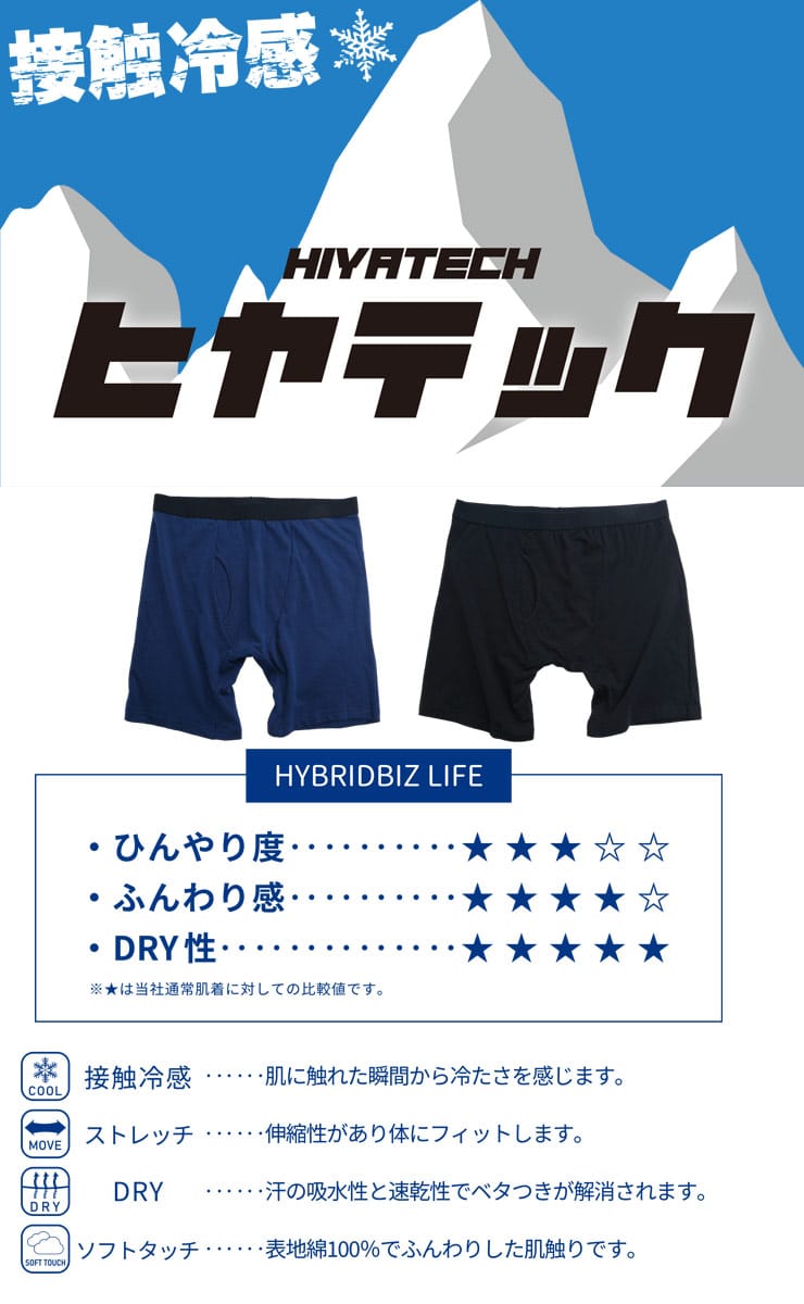 ![]() | HIYATECH《ヒヤテック》シリーズ 涼感肌着のド定番『ヒヤテック』 触れた瞬間から分かる超冷感をはじめ機能性別に3種類のひんやり体験ができる大人気シリーズです >> 商品一覧はこちら |