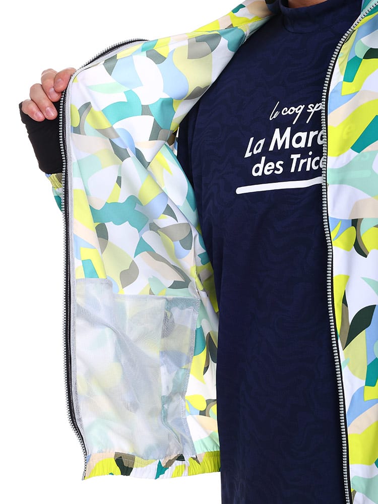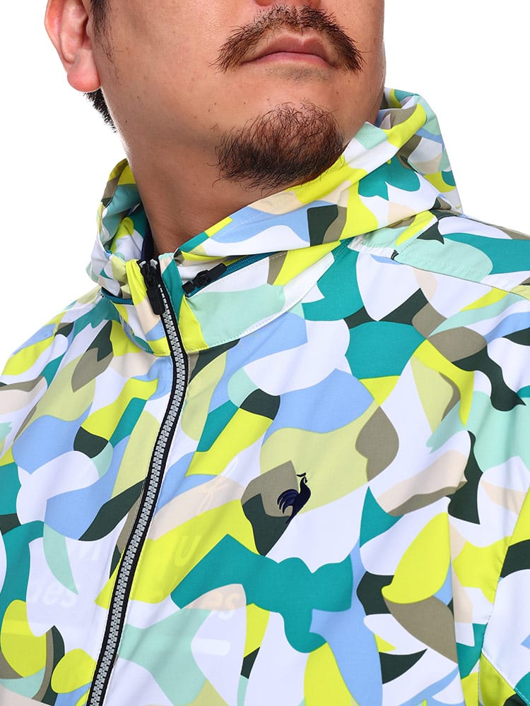 シーズンテーマの「美しい光(ベルルミエール)」インスパイアされた柄を使用したデザインしたアウター。防風性、はっ水性に優れた肌触りの良い素材を使用しており、天候、気温の変化が激しい春先のゴルフシーンで活躍してくれます。また、「ルフ・フォルム」という立体裁断を活用しており、体を包み込んでくれるかのようなフィット感で快適性を実現しています。優れたストレッチがパフォーマンスをサポートします。