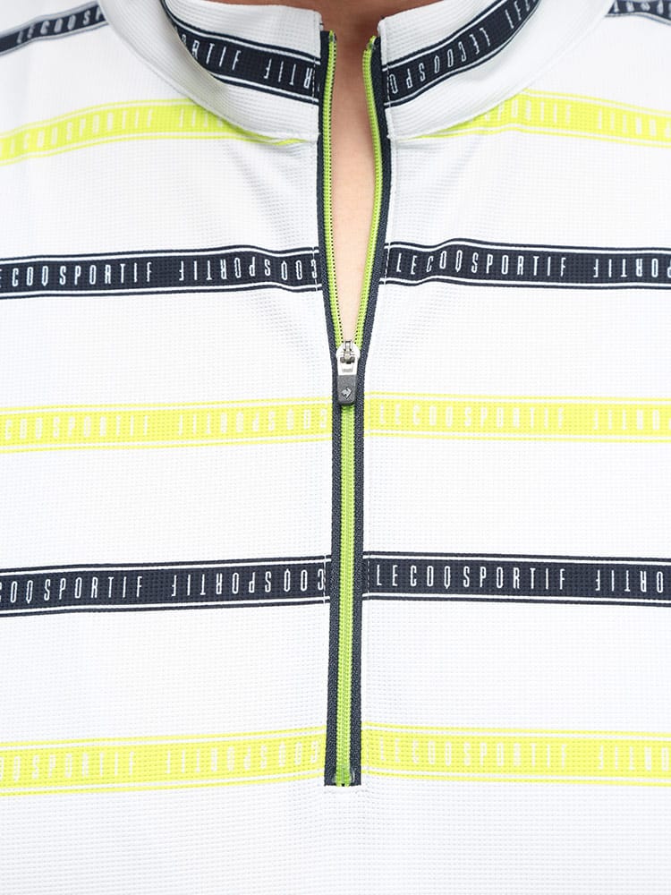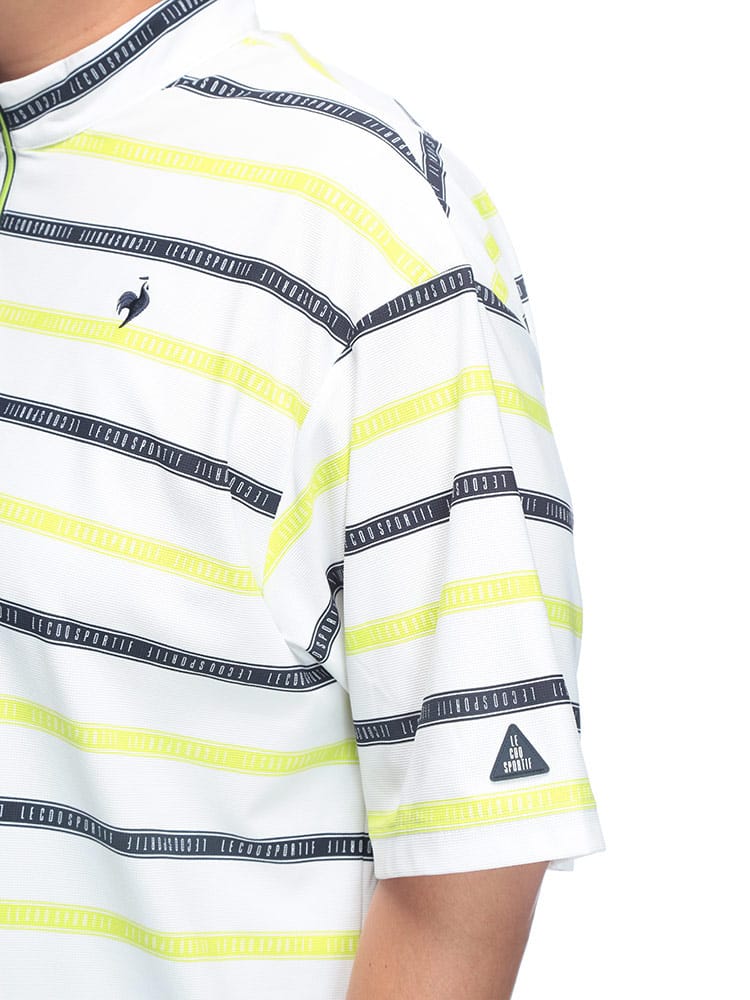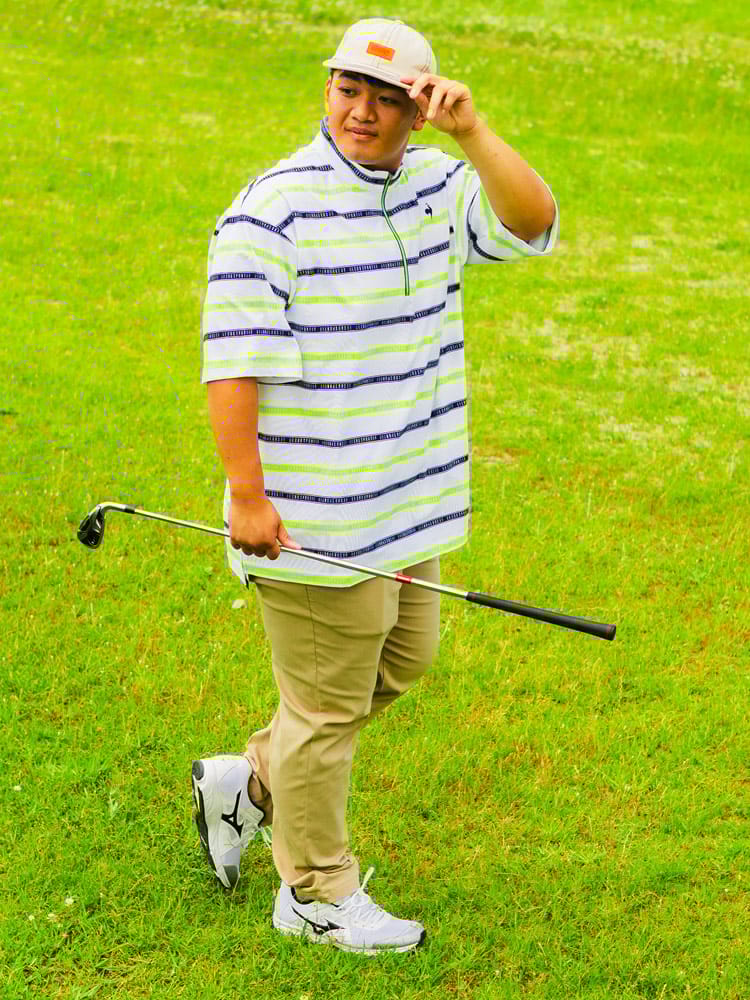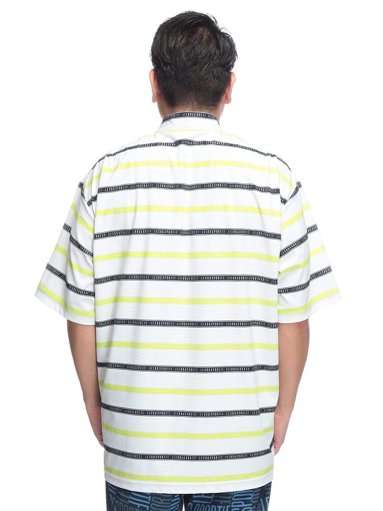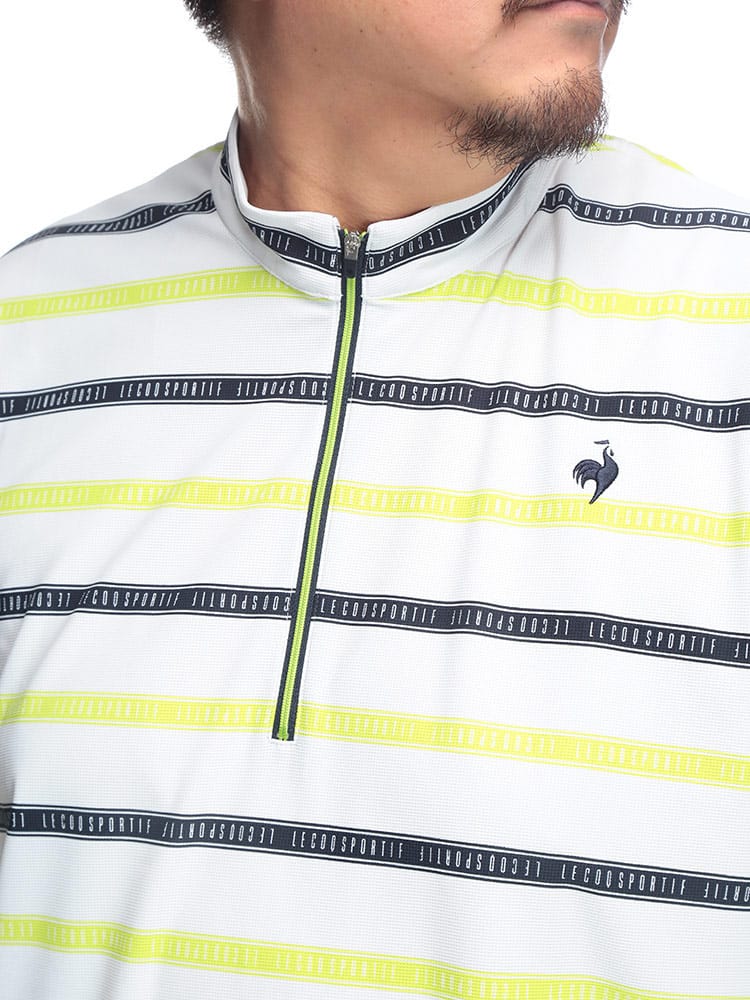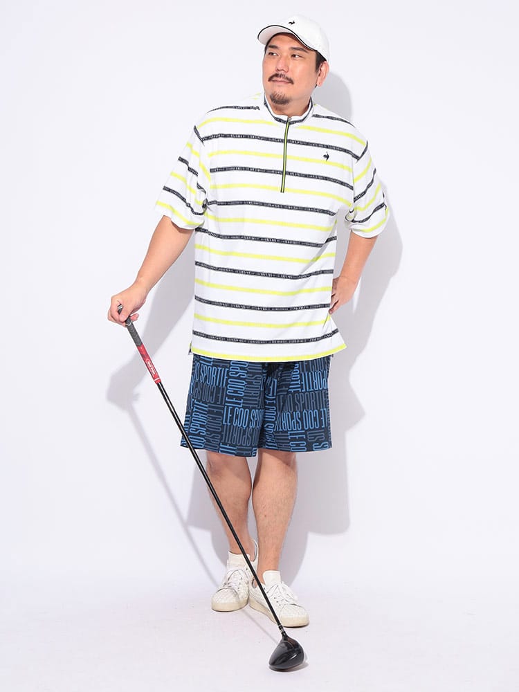 スポーティーなボーダー柄が目を引くハーフジップ半袖シャツが登場。ゴルフや様々なスポーツシーンに映える、洗練されたデザインが魅力です。吸汗速乾性に優れ、汗を素早く吸収・発散し、ドライな着心地をキープ。ストレッチ性も高く、ダイナミックな動きにもスムーズに対応します。気になる紫外線から肌を守るUVカット機能に加え、部分的に接触冷感素材を使用し、暑い季節も快適に過ごせる工夫が施されています。スタンドカラーのハーフジップデザインは、スタイリッシュな印象を与えるだけでなく、温度調節にも便利。大きいサイズのメンズにもおすすめです。機能性とデザイン性を兼ね備えた、春夏のスポーツシーンにぴったりの一枚です。