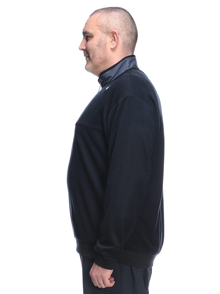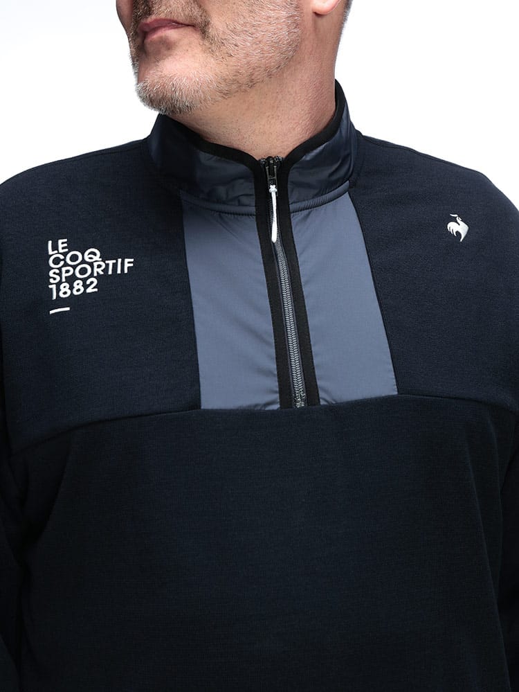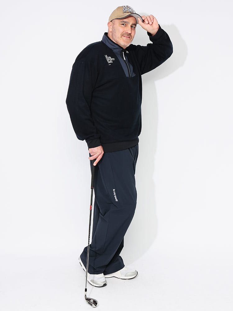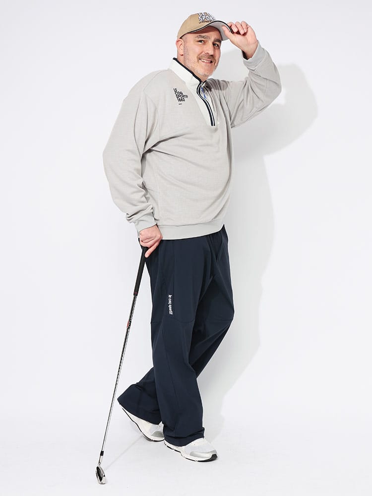 秋冬のコースで差がつくセーターライクな質感のハーフジップカットソーが登場です。ニットのような上品なルックスを持ちながら、実は高い機能性を秘めたプルオーバー。抜群のストレッチ性が、スムーズで力強いスイングを約束します。さらに、暖かなWARM機能で、冷え込む早朝ラウンドも快適にサポート。首元をスタイリッシュに見せるハーフジップは、着脱のしやすさと温度調節に便利です。また、秋冬も油断できない紫外線対策としてUPF50+のカット機能を搭載。大きいサイズでも、このカットソーが持つ軽快な着心地と洗練されたデザインで、あなたのゴルフスタイルを格上げします。