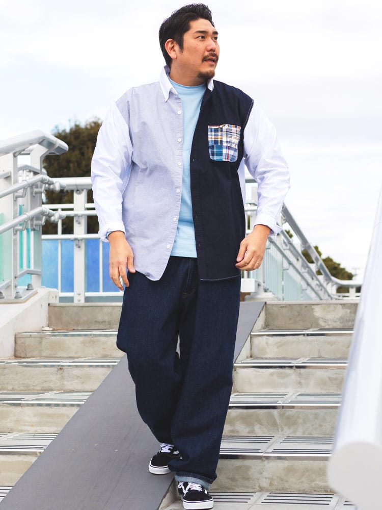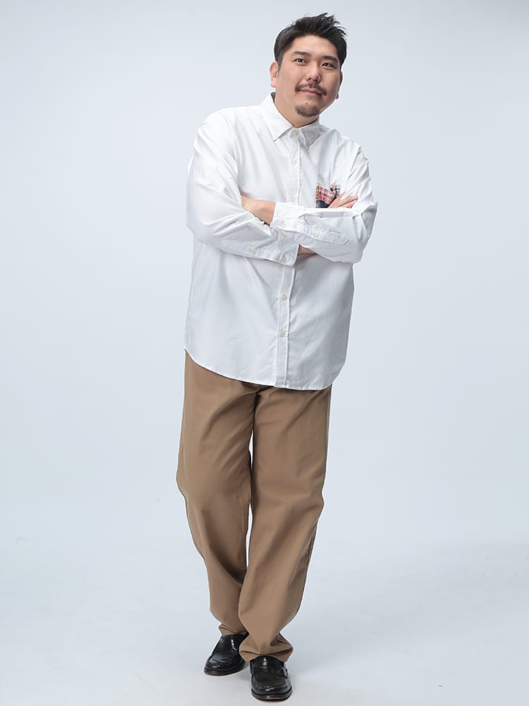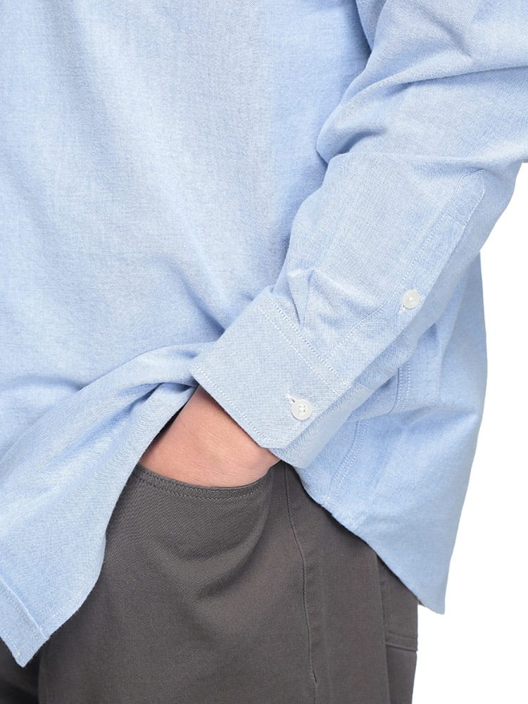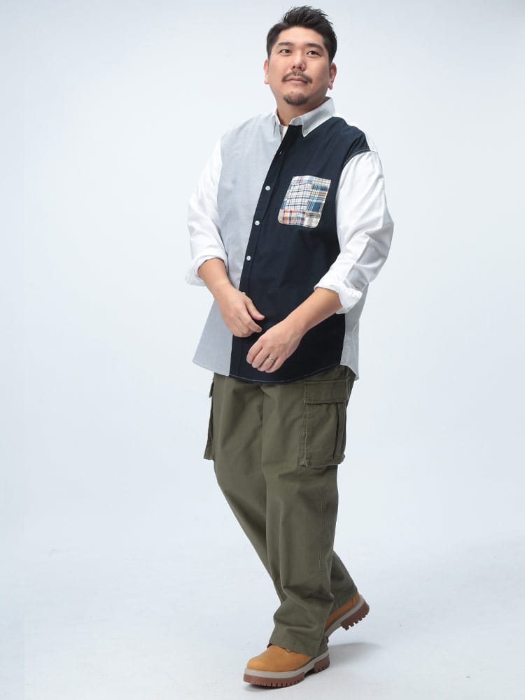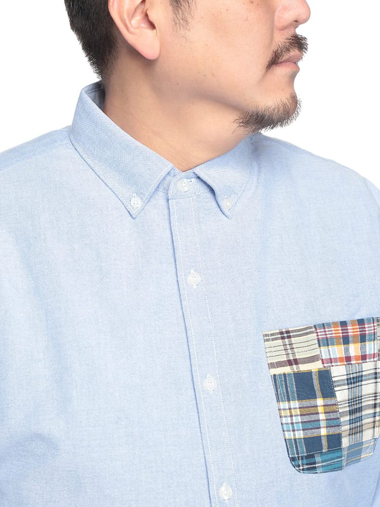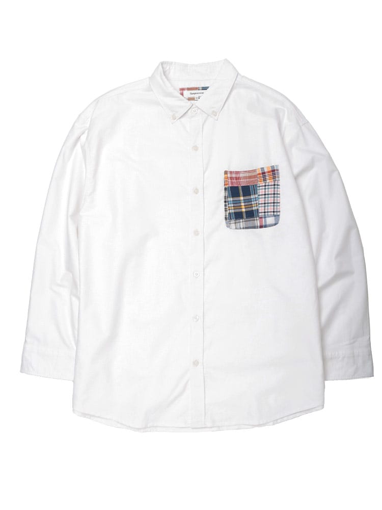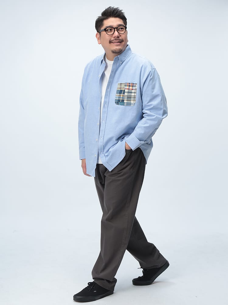 Hampton wearのパッチワークポケット ボタンダウン 長袖オックスシャツは、カジュアルなデザインが魅力です。パッチワークポケットがアクセントになり、一枚でコーディネートの主役になります。丈夫なオックスフォード生地を使用し、長く愛用できます。ボタンダウンカラーで、きれいめな着こなしも可能です。