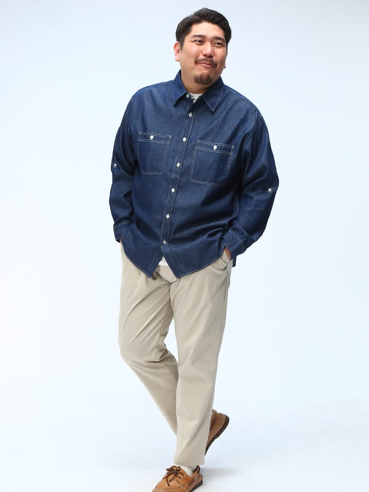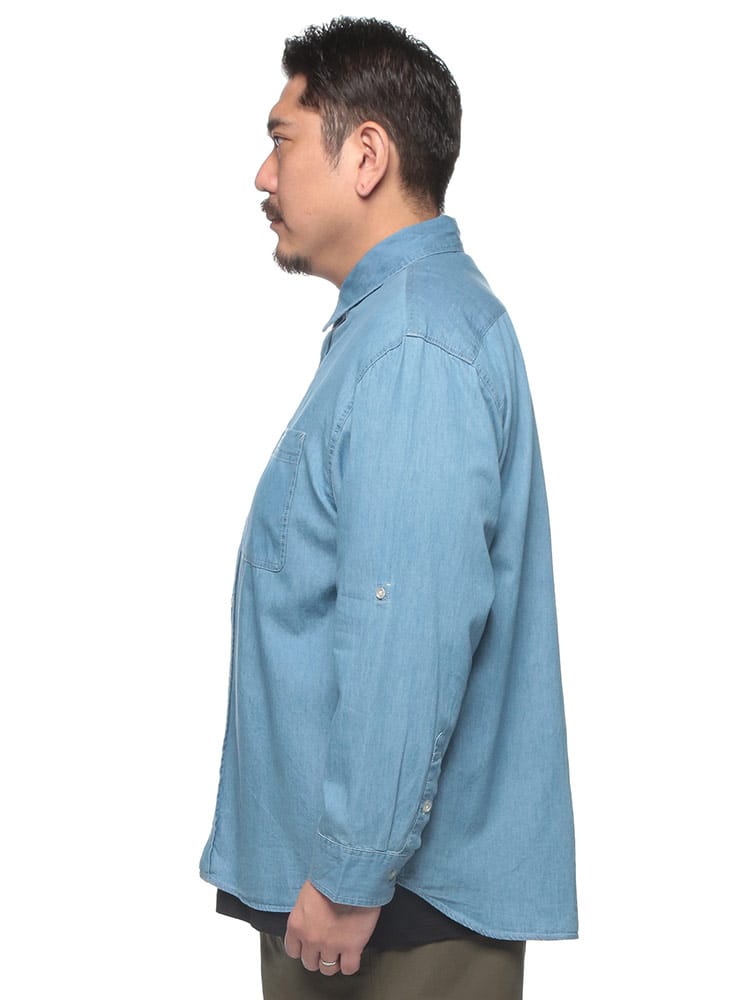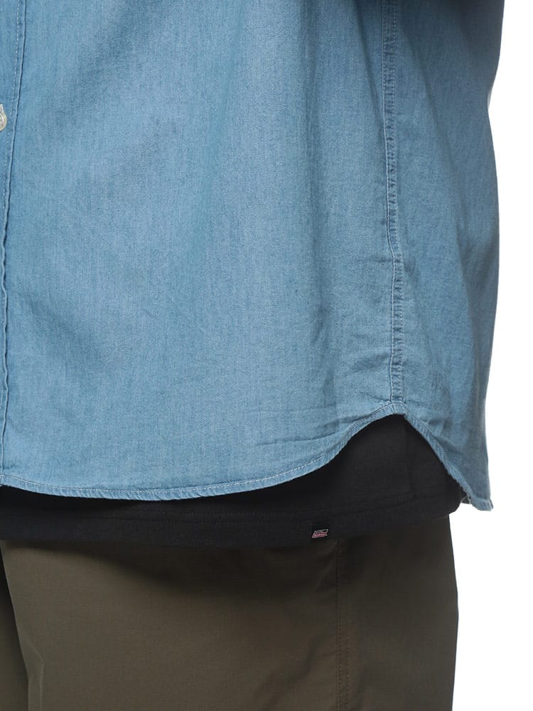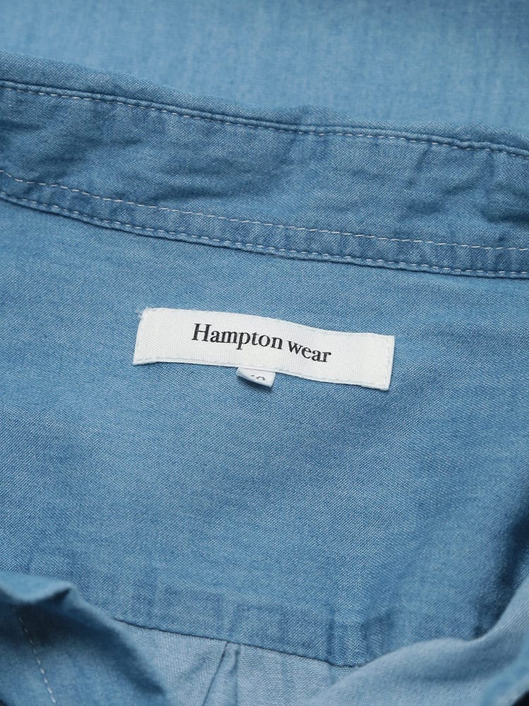 Hampton wearのデニムシャツは、ロールアップ可能な2WAYスリーブが特徴的な一品です。カジュアルなデニム生地に、抗菌消臭ネームタグを採用し、清潔さを保ちます。ロールアップすることで、袖の長さを調整でき、様々なスタイルに対応。