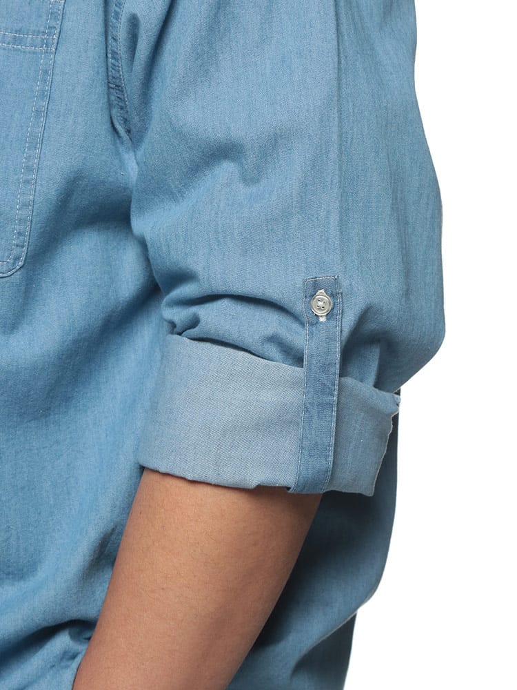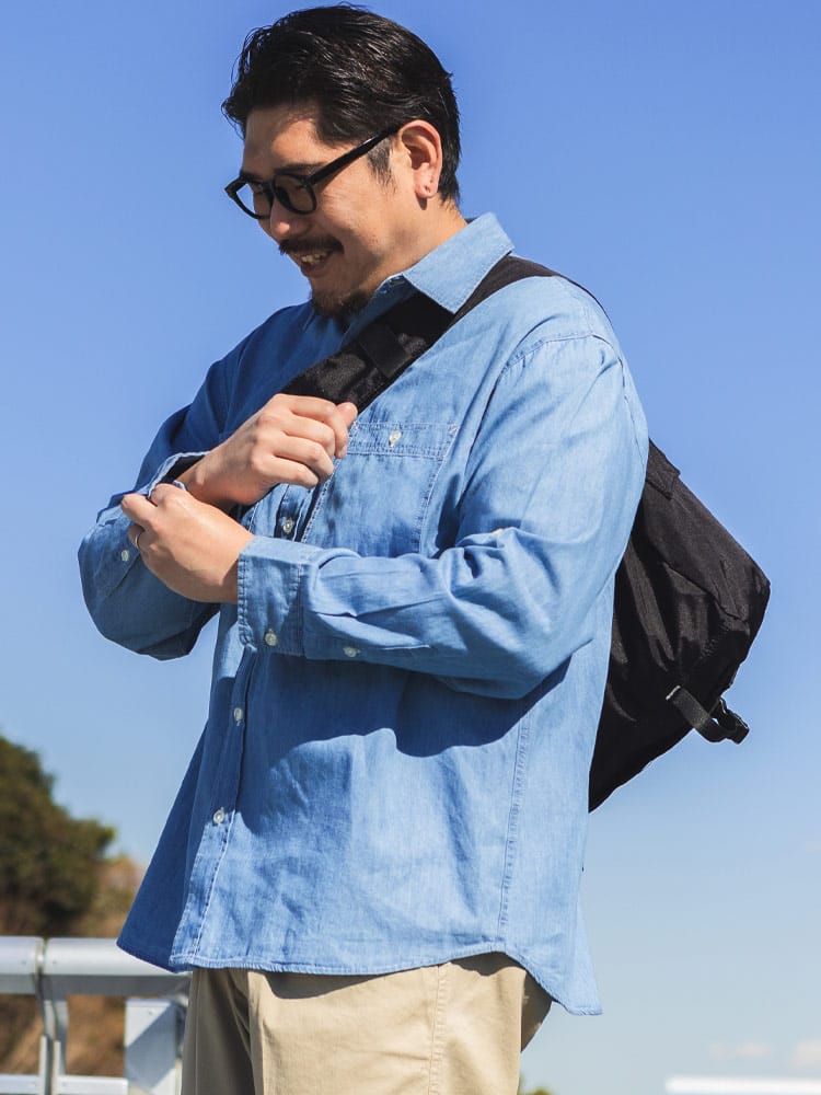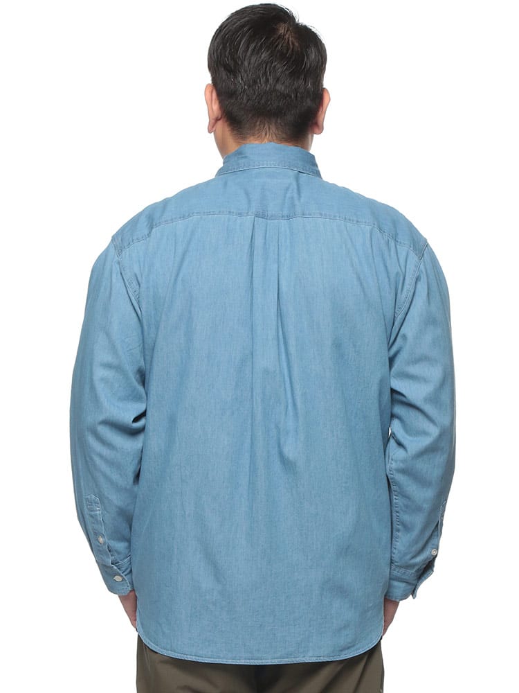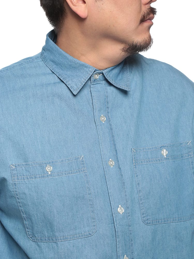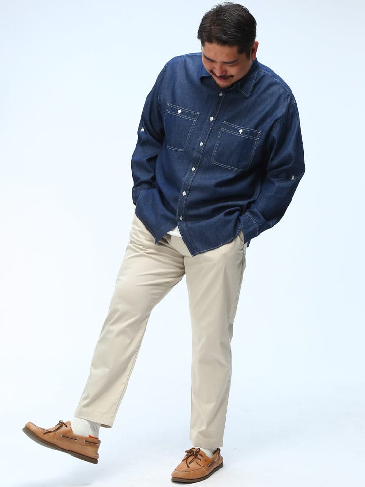 Hampton wearのデニムシャツは、ロールアップ可能な2WAYスリーブが特徴的な一品です。カジュアルなデニム生地に、抗菌消臭ネームタグを採用し、清潔さを保ちます。ロールアップすることで、袖の長さを調整でき、様々なスタイルに対応。