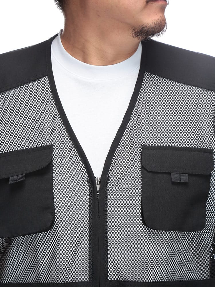 アクティブなあなたにこそ相応しい一着。無骨な印象の中に、洗練されたデザインが光ります。通気性の良いメッシュ素材が、汗ばむ季節も快適さをキープ。Tシャツの上にはもちろん、シャツやカットソーとの重ね着で、ロングシーズン活躍。インナーの色や素材を変えることで、着こなしの幅が広がります。多彩なポケットは、スマートフォンから手帳、財布まで、必要なものをスマートに収納できます。ジップアップ仕様で着脱もスムーズ。タウンユースはもちろん、アウトドアシーンでも活躍必至。機能性とデザイン性を両立した、大人のためのユーティリティウェアです。
