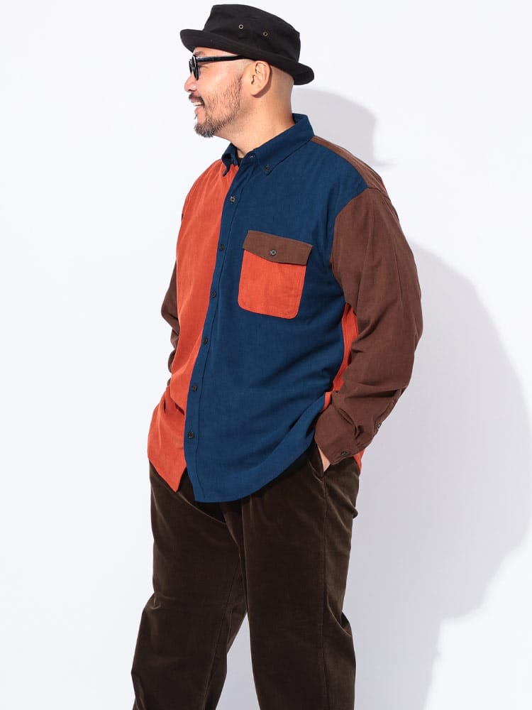 目を惹くクレイジー配色が魅力的な、Hampton wearのボタンダウンシャツ。単調になりがちなコーディネートに、遊び心と個性をプラスしてくれる一枚です。温かみのあるシャツコール(細畝のコーデュロイ)素材を使用し、見た目にも季節感を感じさせます。さらに、ストレッチが効いているため、窮屈感がなく、動きやすいのが特徴。一日を通して快適な着心地を保ちます。胸ポケット付きで、機能性も兼ね備えています。カジュアルなデニムやチノパンはもちろん、きれいめなパンツと合わせて、上品な大人のミックススタイルを楽しむのもおすすめです。一枚で主役になる存在感で、周りと差をつけるスタイリングが完成します。