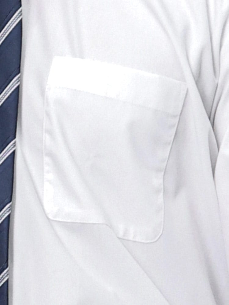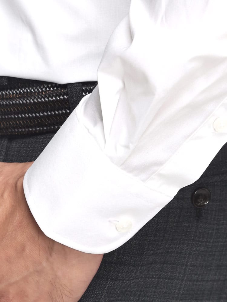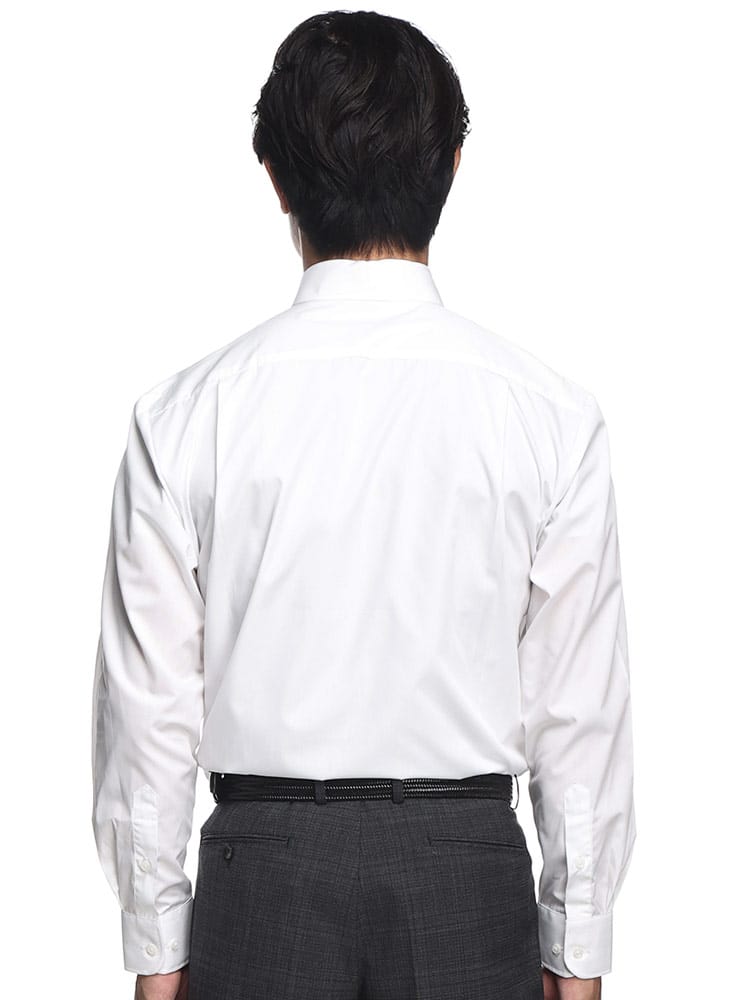 形態安定の白無地セミワイドカラー長袖ワイシャツは、ビジネスシーンでの使いやすさを重視した一枚です。ノーネクタイでもインナーが見えにくく、衿元はスッキリとしたボタン位置で、芯地に型崩れしにくい素材を使用した美しい仕上がりが魅力です。また、カフス部分もしっかりとしたデザインで、密度の高い生地により透け感を軽減し、上質な見た目を保ちます。機能性とデザイン性を兼ね備えたこのシャツは、ビジネスマンにとって必須のアイテムです。