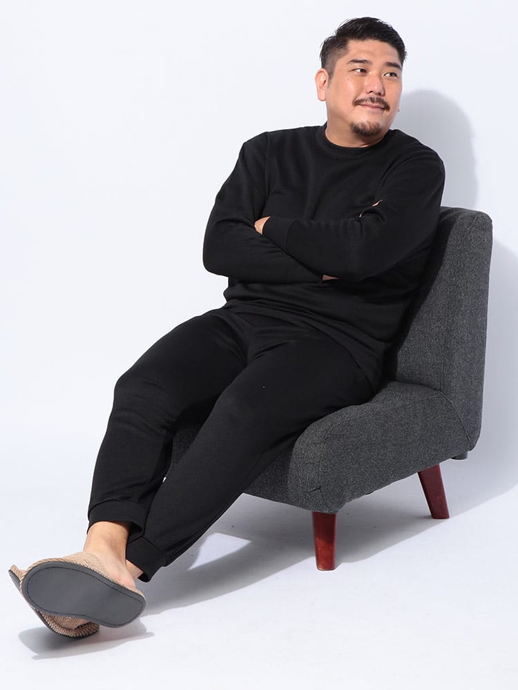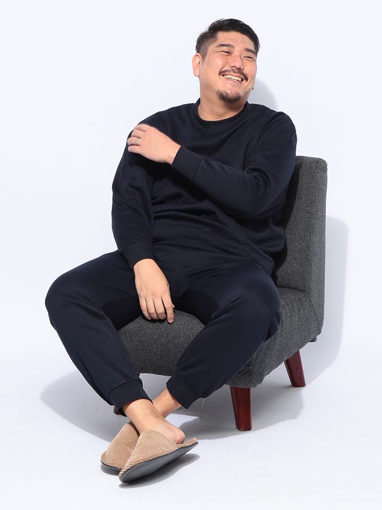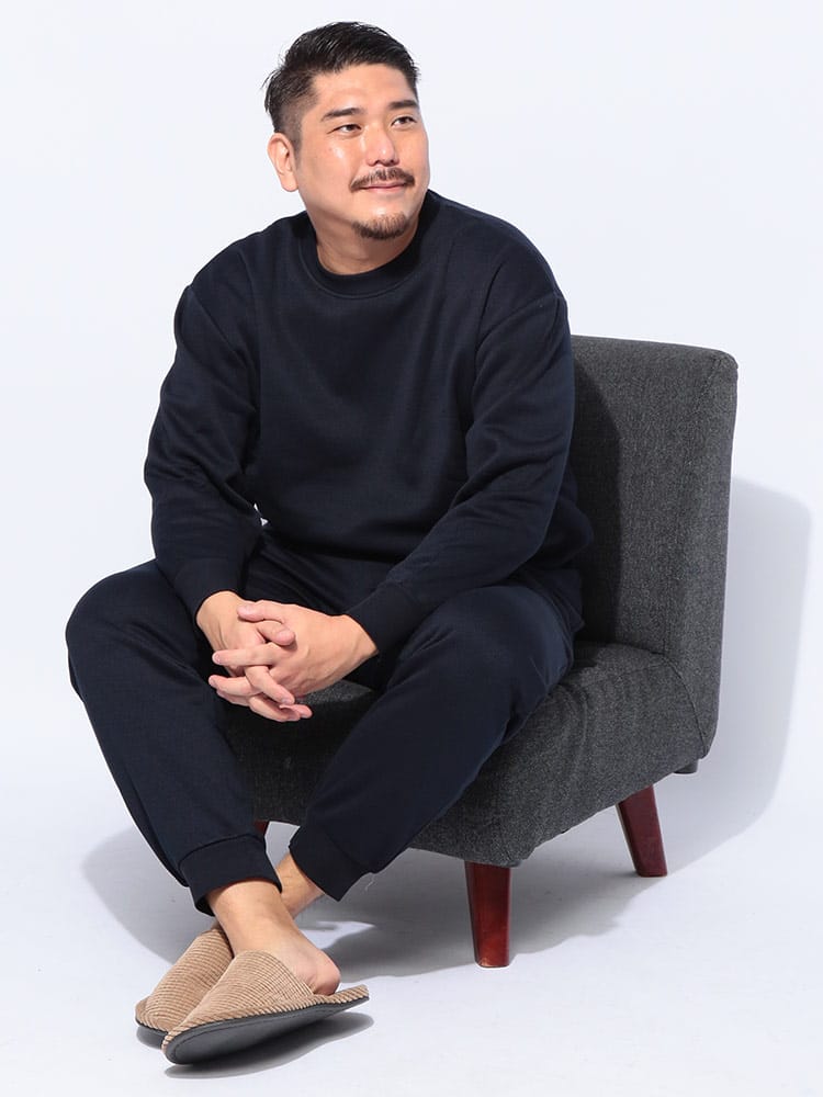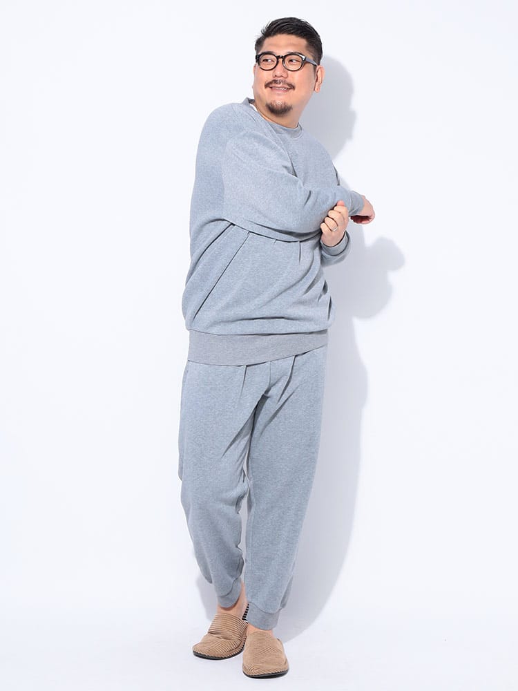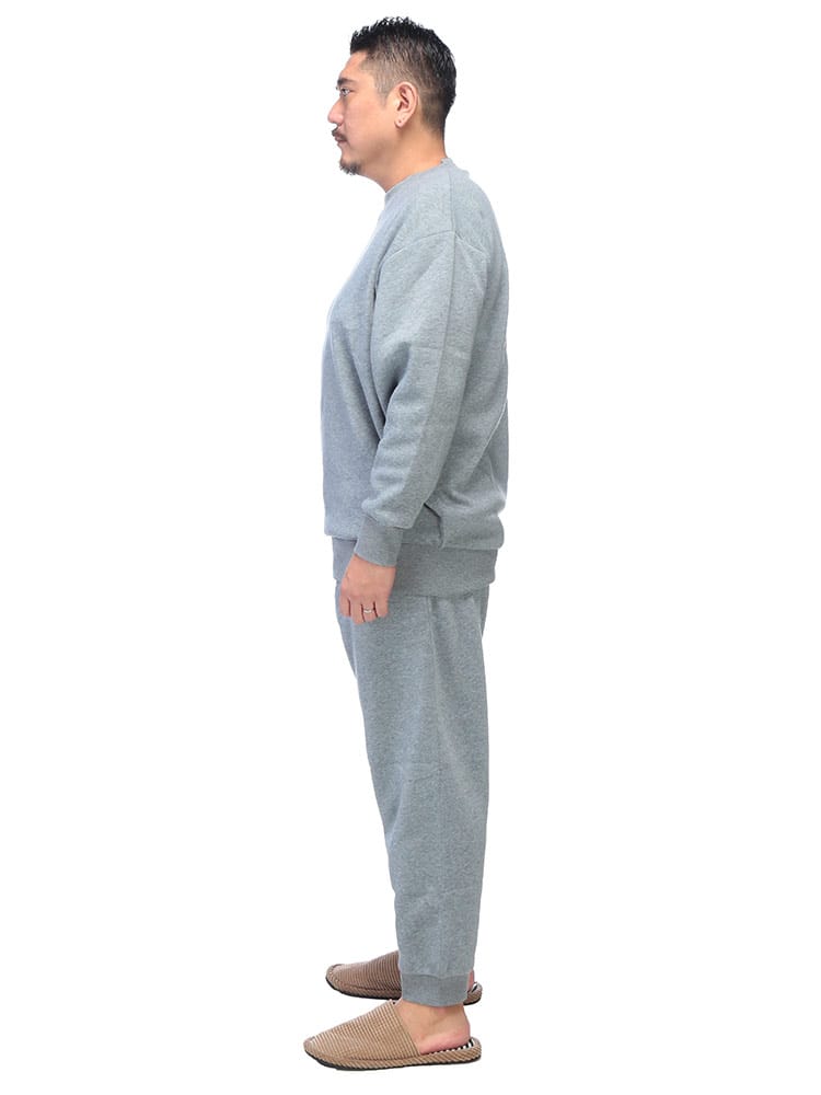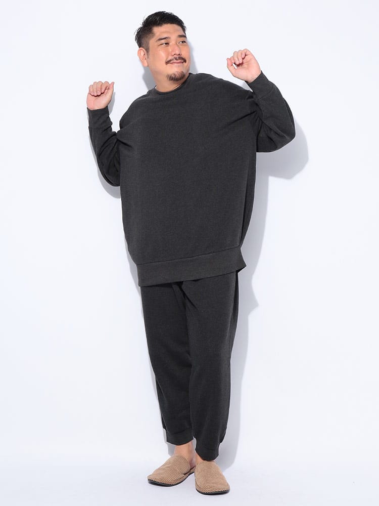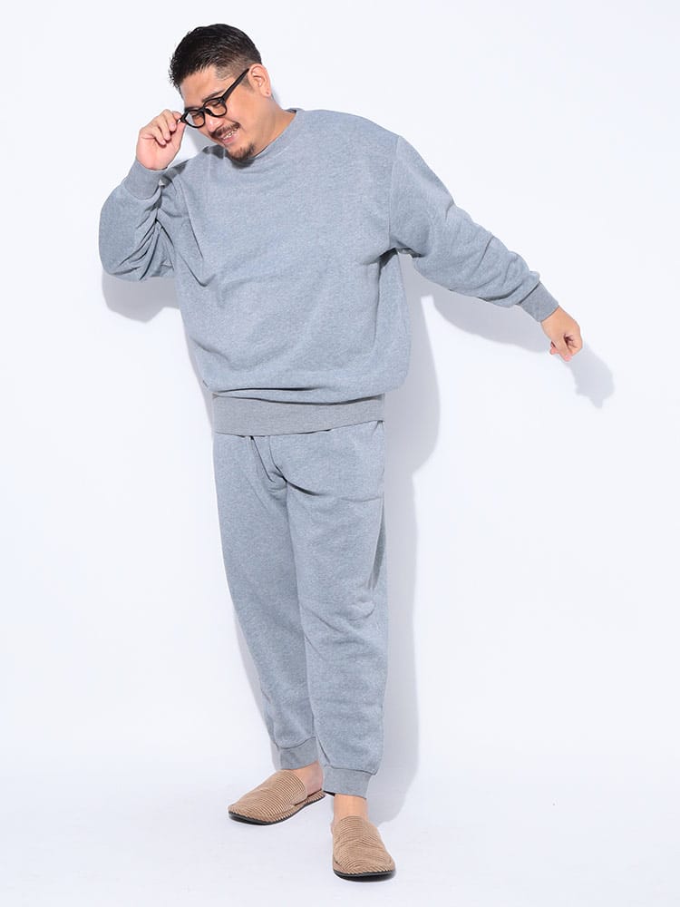 仕様 :クルーネック / パンツ外側ポケット数×2つ / ウエスト調節ゴム / 前閉じ / 裏起毛 / セットアップ