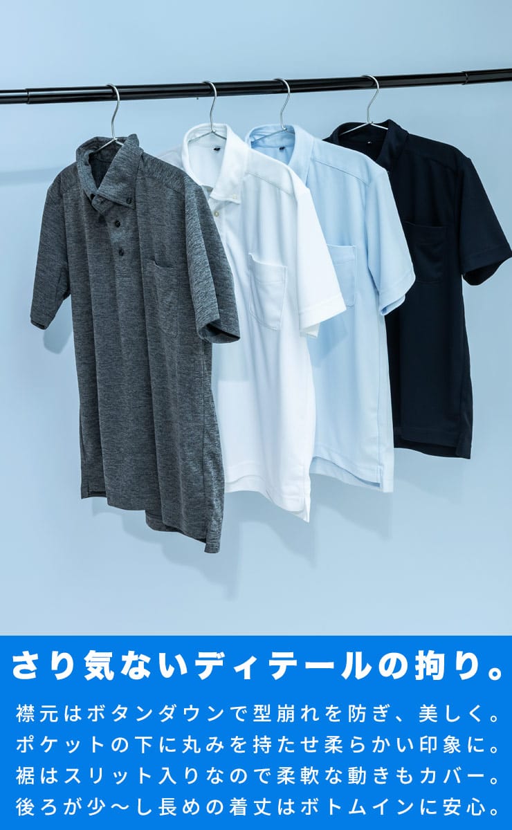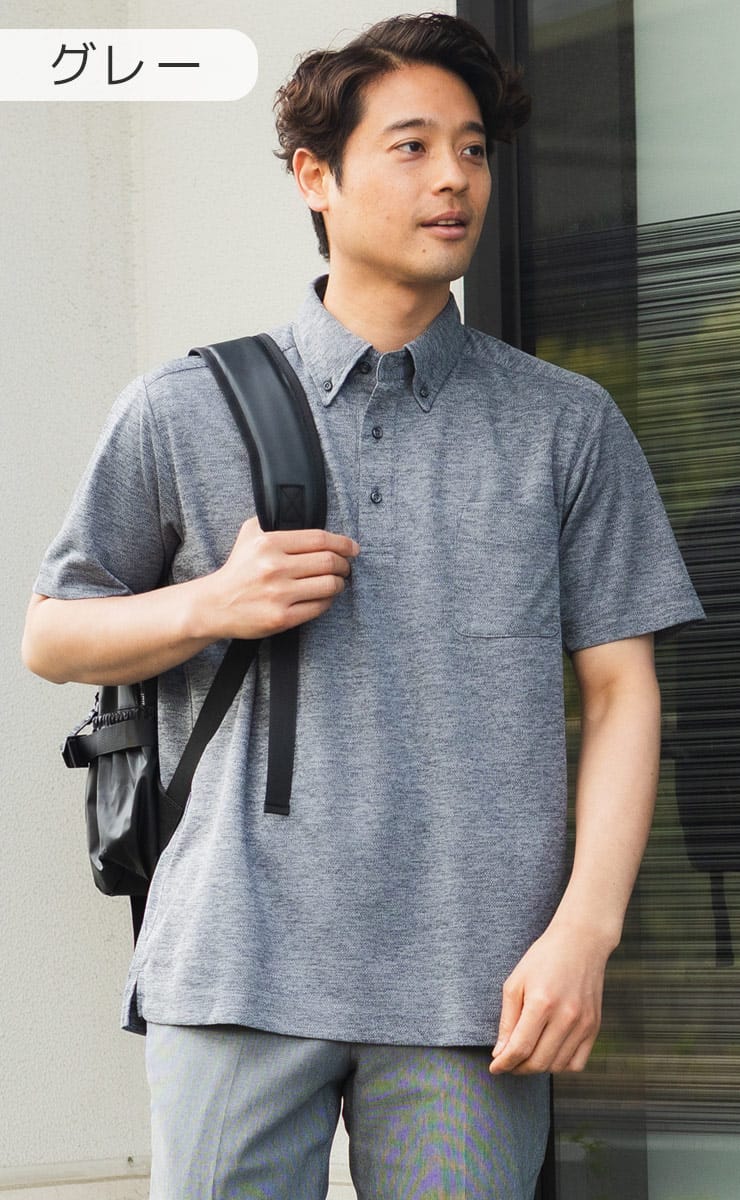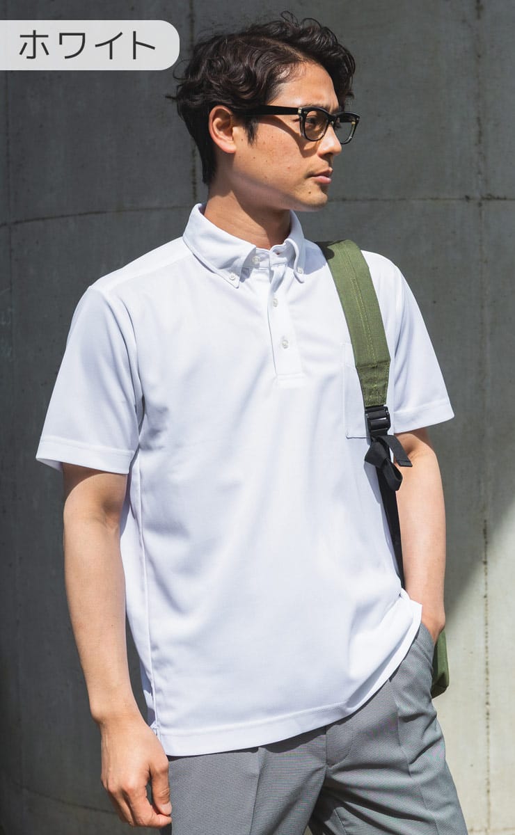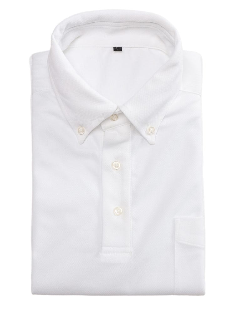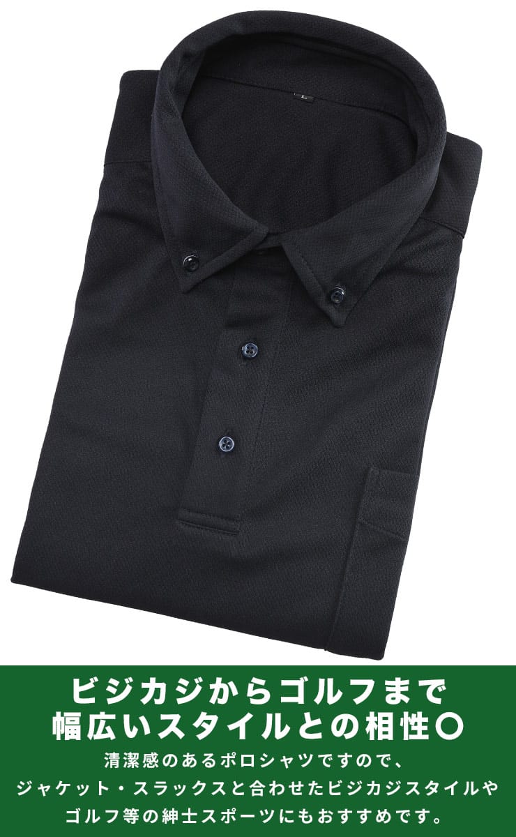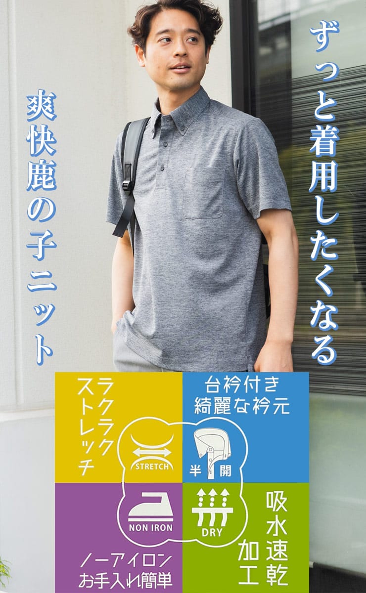SAKAZENの半袖ポロシャツは、ビジネスやGOLFシーンにも最適な一枚です。ストレッチ素材による快適な着心地に加え、吸水速乾機能で汗をかいてもサラッとドライ。ノーアイロンでお手入れが簡単なのが嬉しいポイントです。きちんと感のある鹿の子素材とボタンダウンデザインに加え、台衿付きの美しい衿元が上品な印象を与えます。クールビズスタイルにも最適で、機能性と洗練されたルックスを兼ね備えたアイテムです。