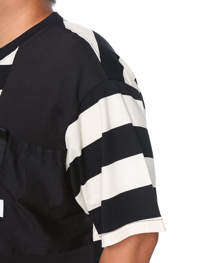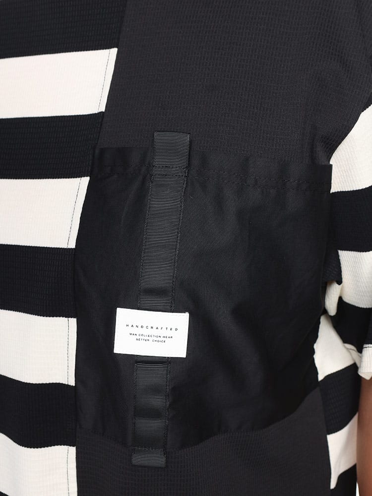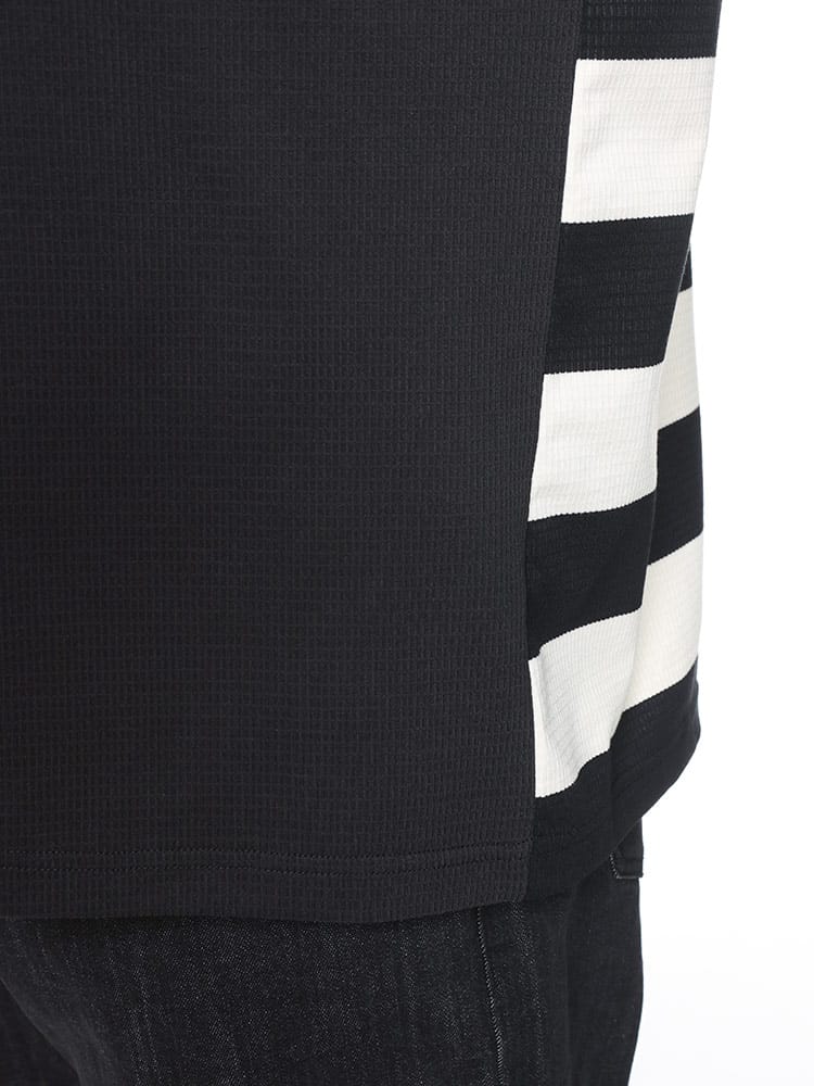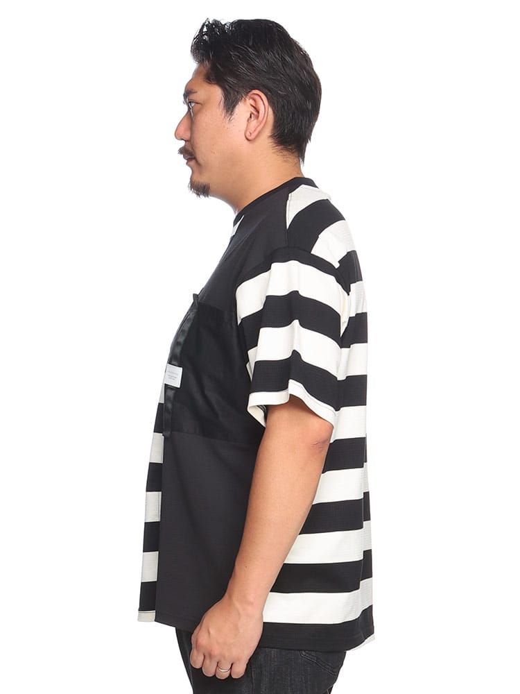 ボーダー切替半袖ワッフルTシャツは、スタイリッシュで快適なカジュアルウェアです。ワッフル生地のテクスチャーが特徴で、通気性と伸縮性が優れており、動きやすさを提供します。胸ポケットがセパレートされているデザインがアクセントとなり、実用性も兼ね備えています。ボーダー切替のデザインがシンプルながらおしゃれで、日常のコーディネートに取り入れやすい一枚です。