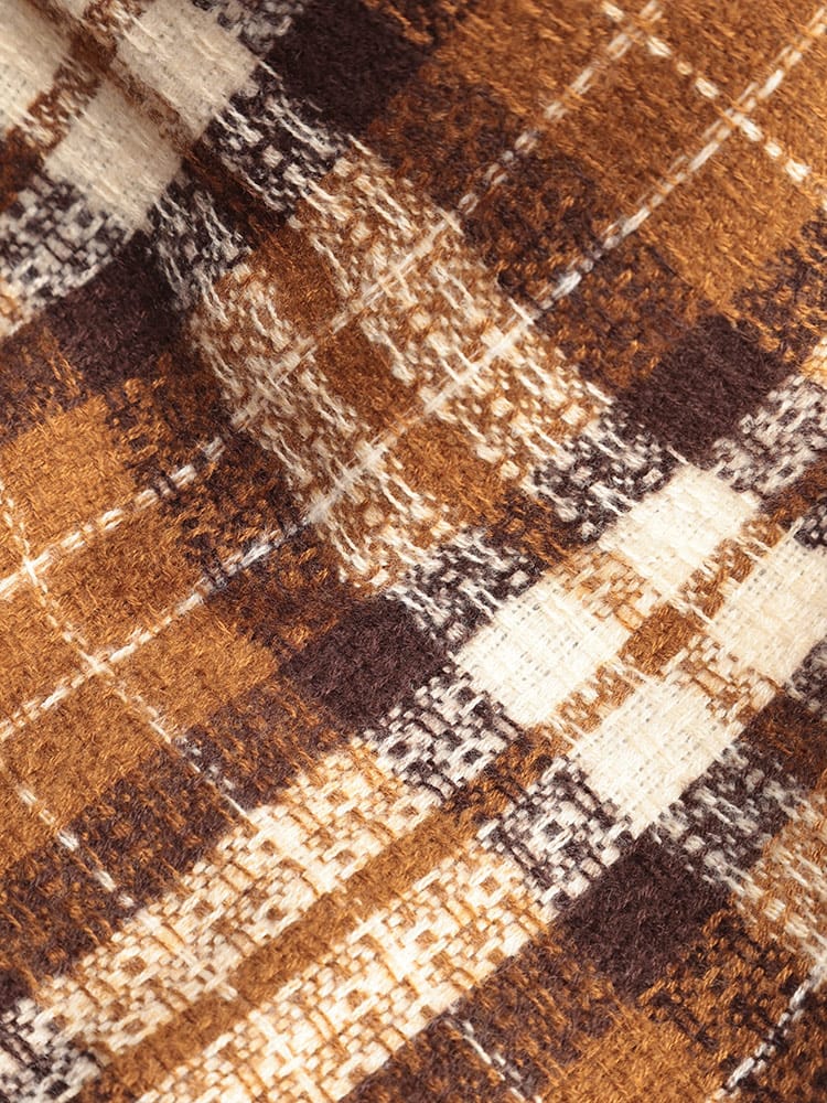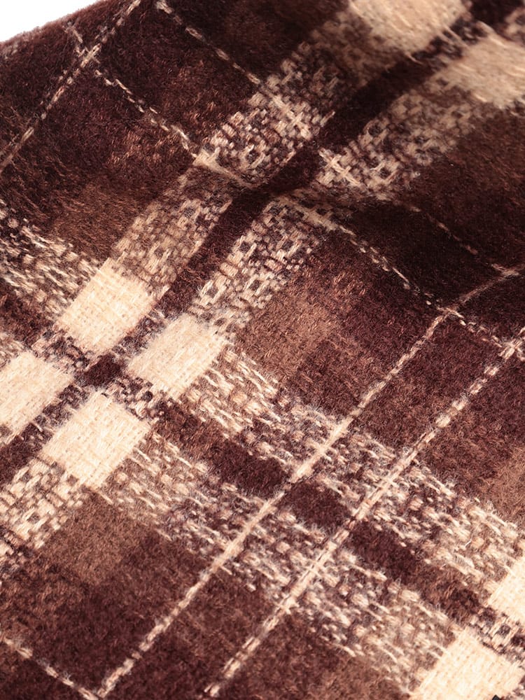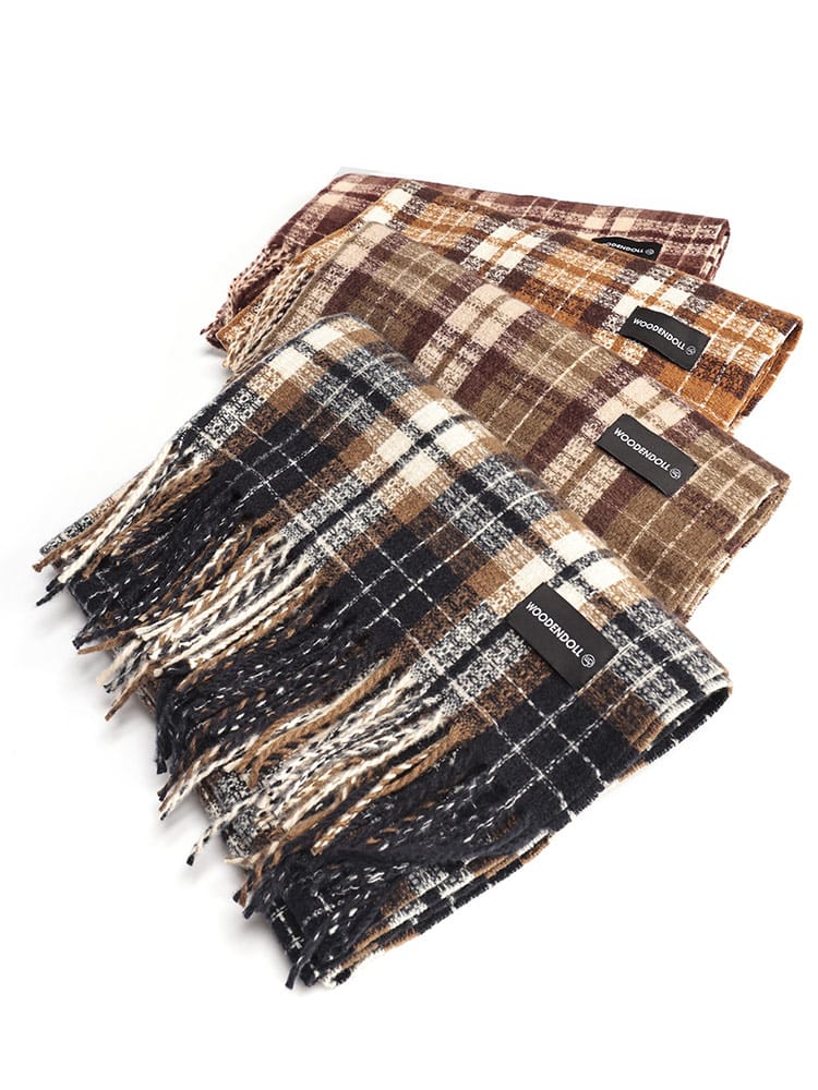WOODENDOLLのチェック柄マフラーは、男女問わず使えるユニセックスアイテム。柔らかな肌触りの素材で、温かみのあるチェック柄が魅力です。大判サイズで様々な巻き方が楽しめ、防寒性も抜群。フリンジがアクセントになり、カジュアルスタイルを格上げします。
