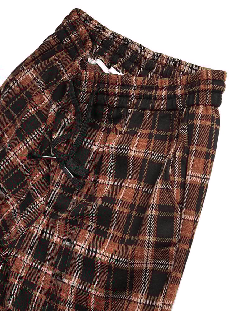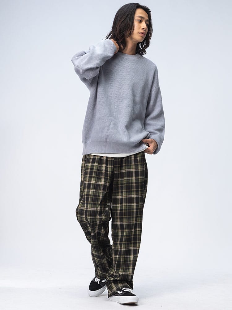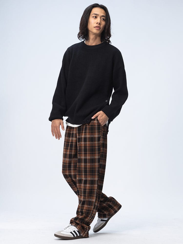 WOODENDOLLのチェック柄ワイドパンツは、ウエストゴム&ドローコードで楽ちん。ストレッチ素材で動きやすく、快適な履き心地です。カジュアルなチェック柄が魅力で、普段使いにぴったり。ゆったりとしたシルエットでリラックスして過ごせます。