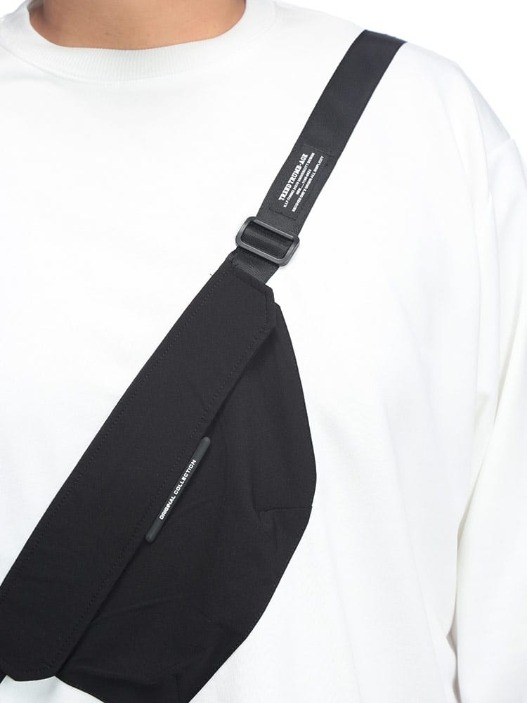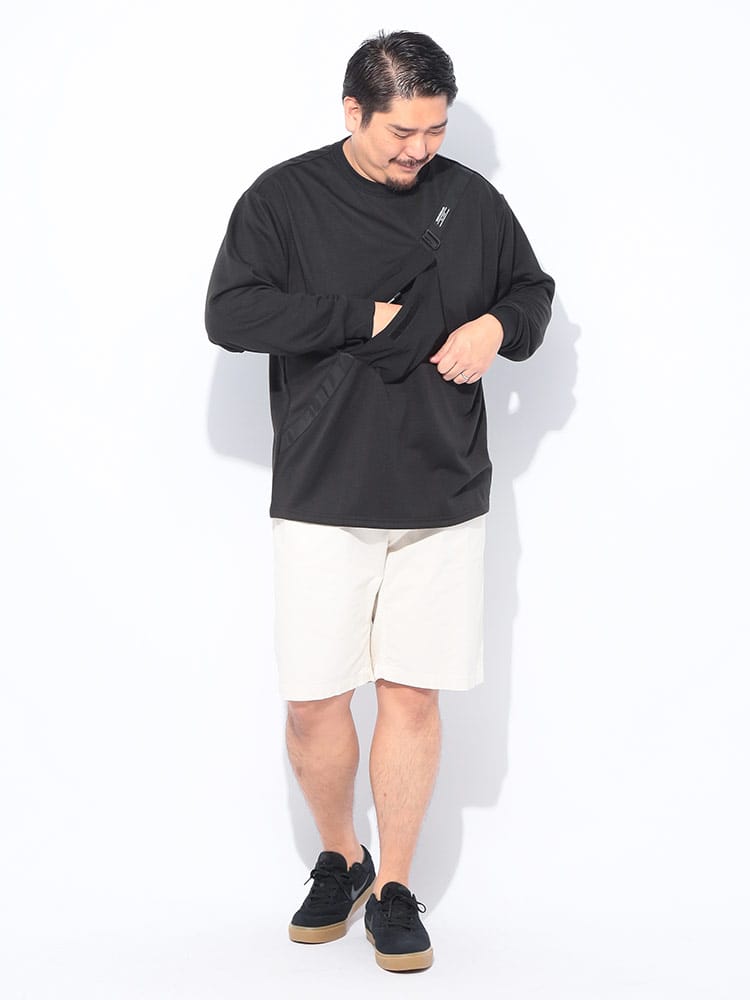 遊び心溢れるフェイクボディーバッグデザインが、ストリートスタイルを格上げする長袖Tシャツ。まるで本物のボディーバッグを身に着けているかのような、ユニークなデザインが魅力。首元と袖口のリブ仕様が、カジュアルな中にも引き締まった印象を与えます。フェイクバッグは、マジックテープで開閉可能。遊び心と実用性を兼ね備えたデザインは、コーディネートの主役になること間違いなし。シンプルなボトムスと合わせるだけで、ワンランク上のストリートスタイルが完成します。