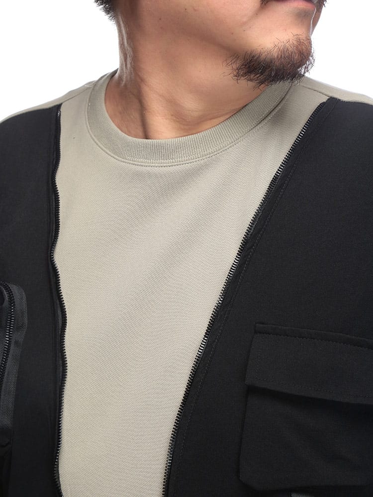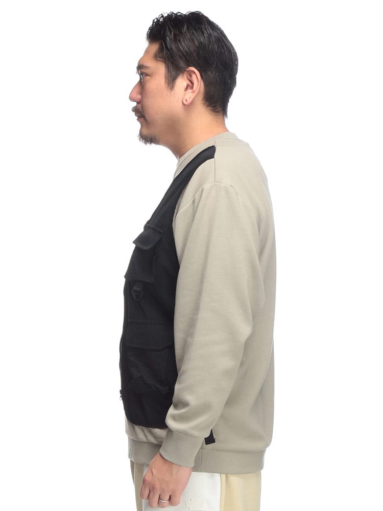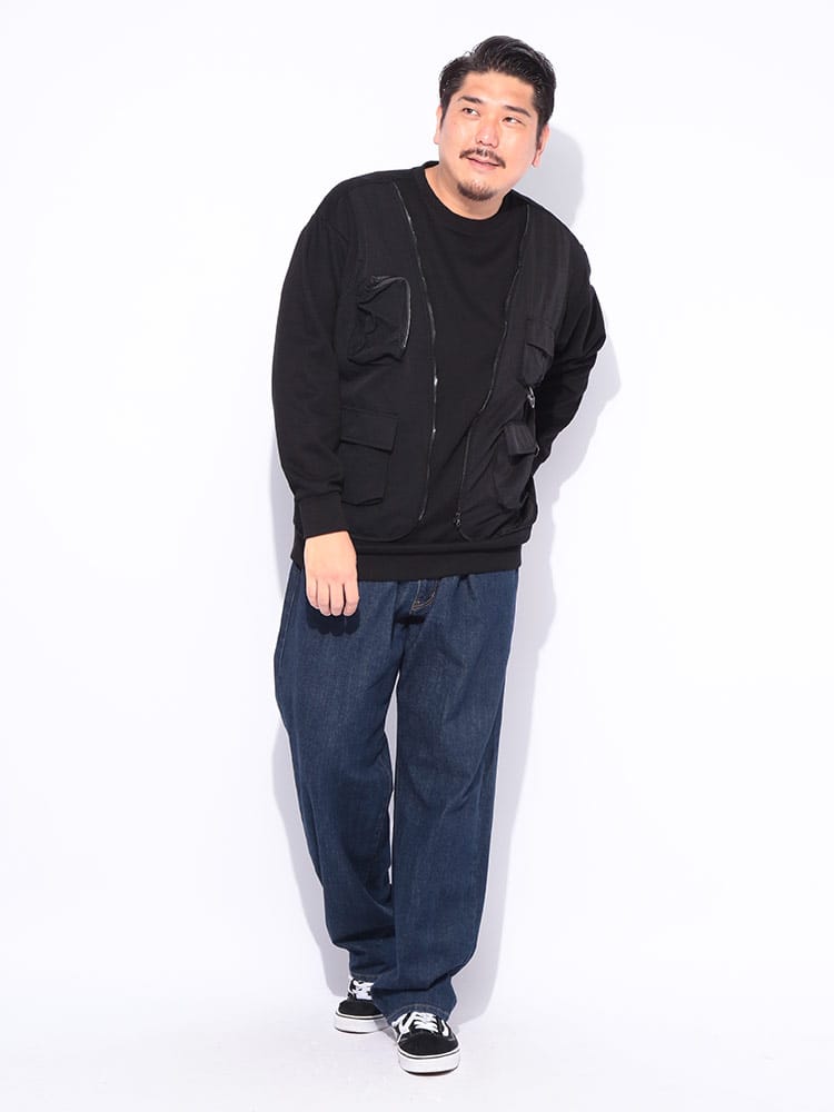 B&T CLUBから、一枚でレイヤードスタイルが完成するフェイクベスト付きクルーネックトレーナーが登場。まるでベストを重ね着しているかのようなデザインで、手軽におしゃれな雰囲気を演出できます。ゆったりとしたシルエットで、大きいサイズのメンズにもリラックスして着用いただけます。本体は柔らかな肌触りの素材を使用し、快適な着心地。両サイドにはフラップ付きポケット、さらに胸元にもポケットを備え、機能性も◎。クルーネックでカジュアルに着こなせる、普段使いにぴったりのアイテムです。シンプルながらも遊び心のあるデザインで、いつものカジュアルスタイルをアップデートしてくれる一着です。