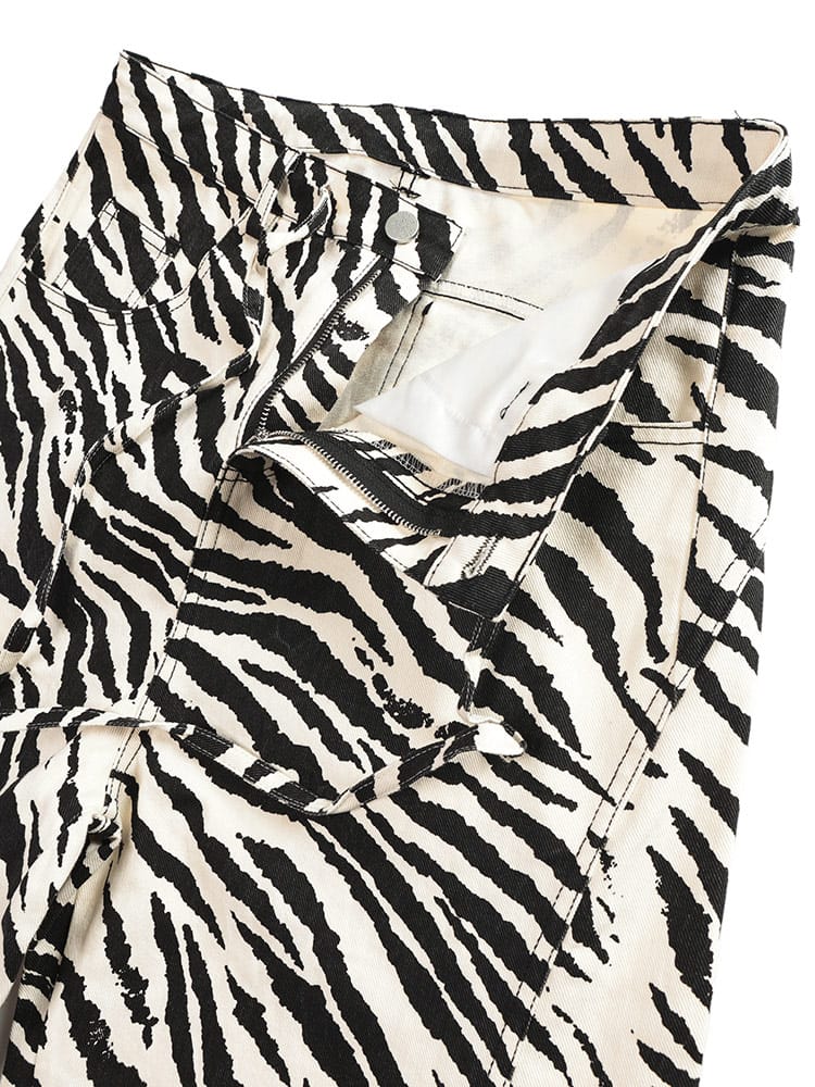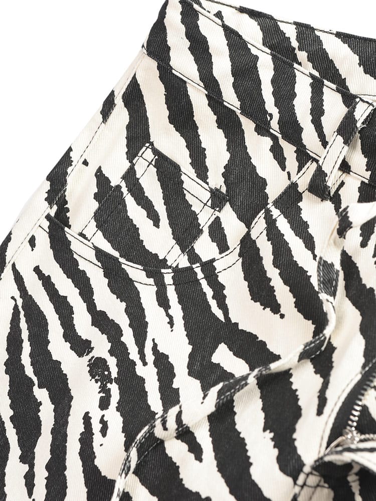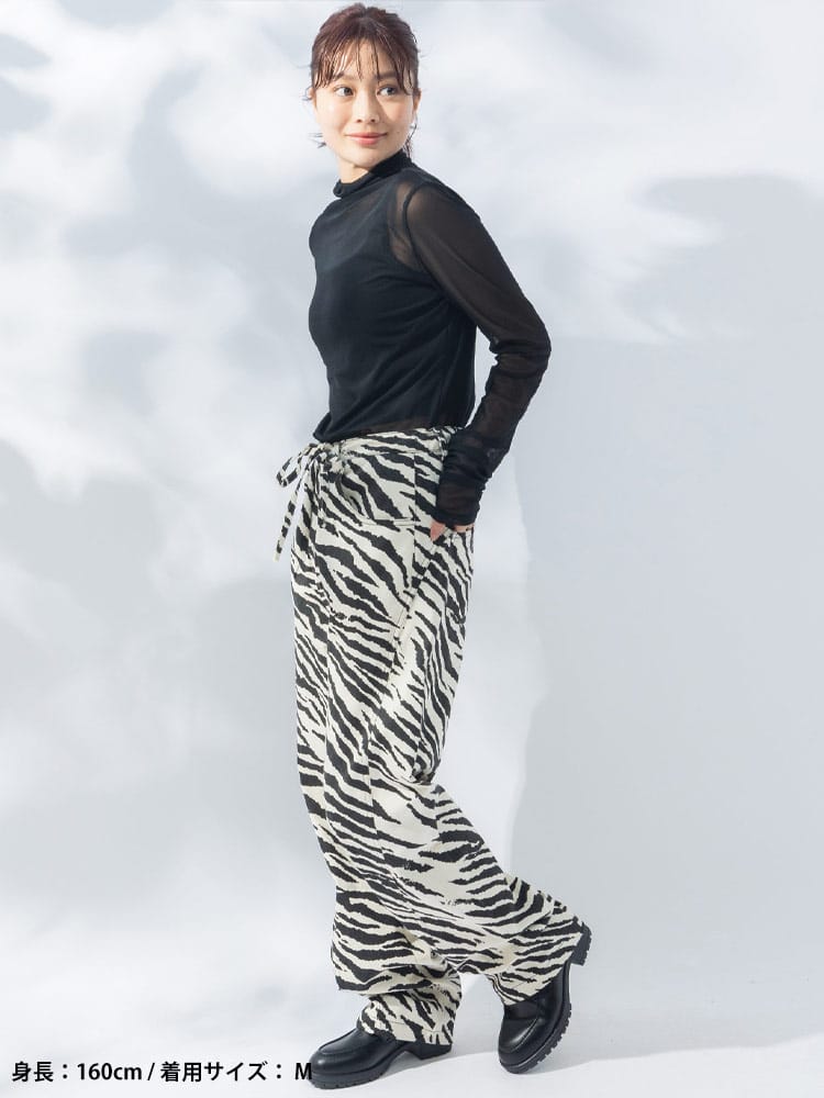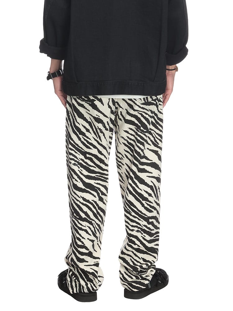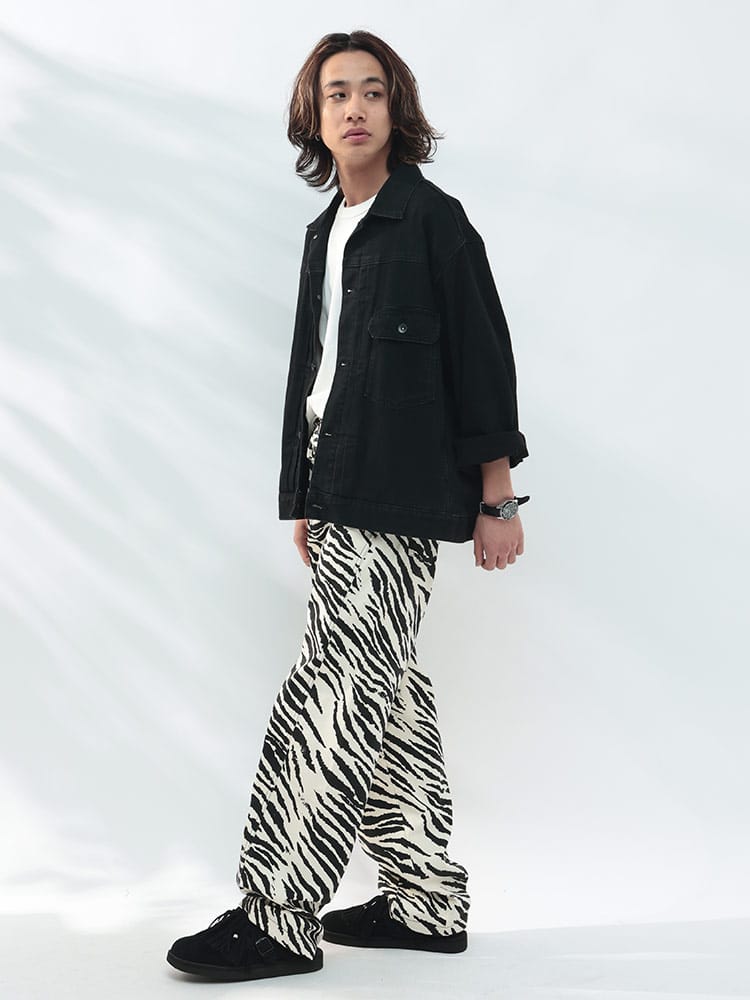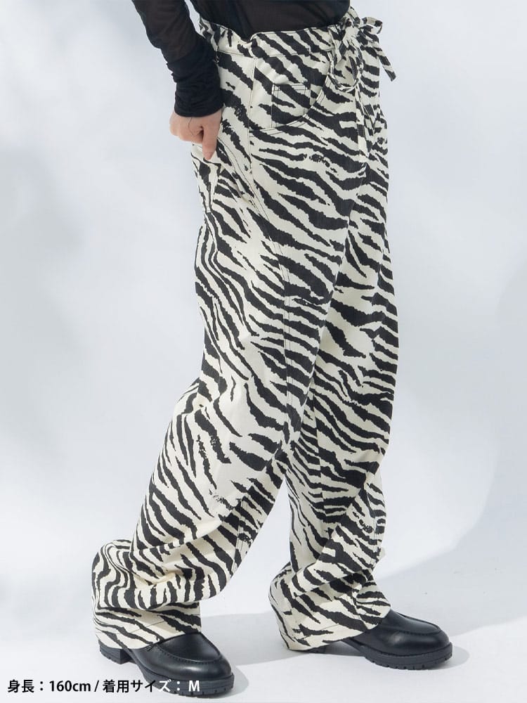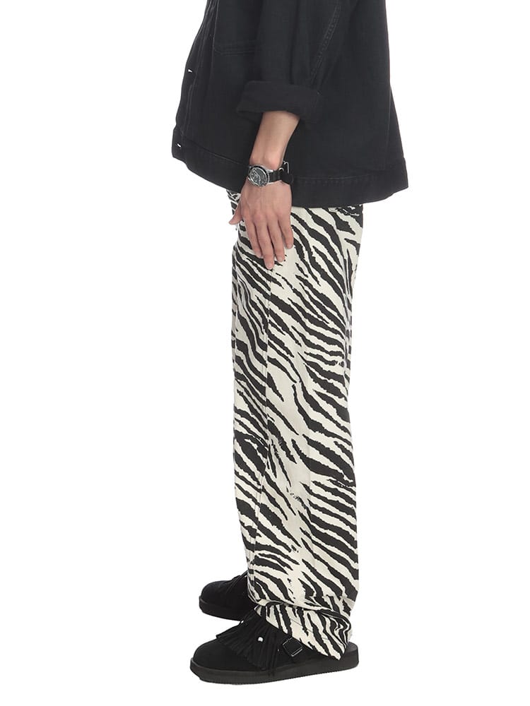 個性を主張する、ゼブラ柄立体パンツ。インパクトのあるゼブラ柄が、コーディネートの主役になるパンツ。立体的なシルエットが、他にはない個性を演出します。綿100%の生地は、丈夫で穿き込むほどに味わいが増します。ジップフライ仕様で、着脱もスムーズ。外側には5つのポケットを備え、機能性も抜群。Tシャツやシャツと合わせた、シンプルなスタイリングはもちろん、柄物トップスと合わせた、個性的なスタイリングもおすすめです。足元は、スニーカーやブーツはもちろん、サンダルと合わせた、抜け感のあるスタイルもおすすめです。いつものコーディネートに、インパクトをプラスしたい方におすすめのアイテムです。