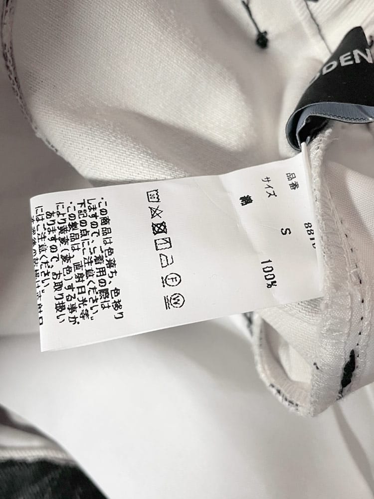 商品についている下げ札(タグ)に身長や胸囲などのサイズが記載されたものがございますが、そちらは「対応ヌードサイズ表記」となります。当店の商品ページに記載しております商品そのものを採寸した【実寸サイズ表記(仕上がり寸法】とは異なる表記となりますので、ご注意ください。