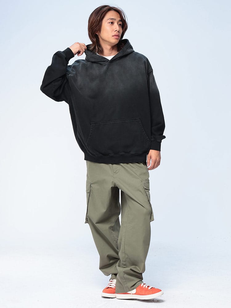 身長:175cm / B:85 / W:70 / H:88 / S:26.5cm 着用サイズ:L