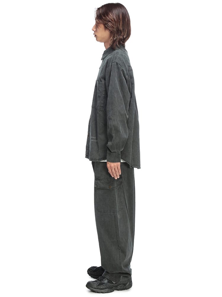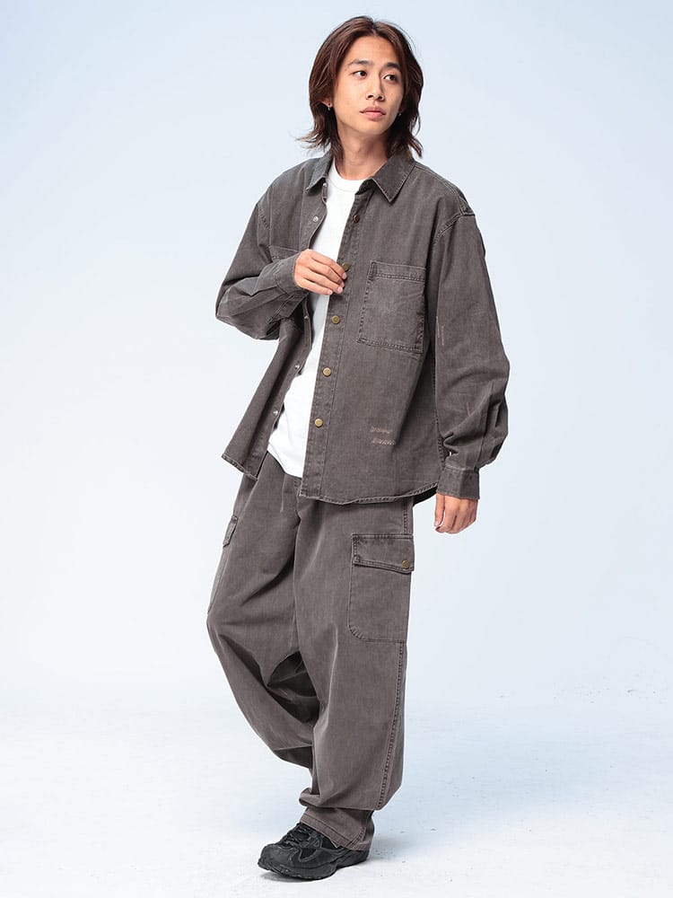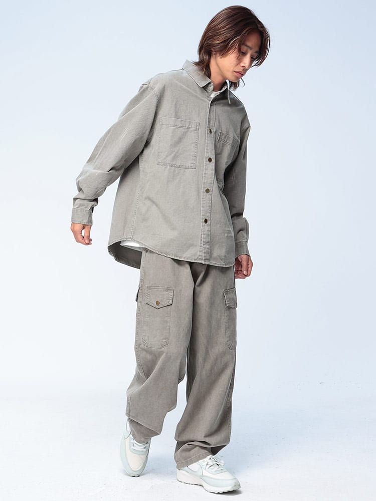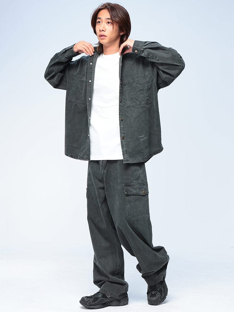 即戦力のワザありセットアップ。上下で着用するだけで、洗練されたコーディネートが即完成します。最大の魅力は、綿100%の生地に施されたヴィンテージ加工。長年着込んだような絶妙なアタリや風合いが、新品とは思えないこなれた雰囲気を演出し、手軽に上級者スタイルを叶えます。トップスは長袖シャツスタイルで、アウターとしても活躍する2つのポケット付き。ボトムスは、計7つものポケットを備えたカーゴテイストで、高い収納力とデザイン性を両立しました。ウエストは調節可能なゴムとジップフライで穿き心地も快適。もちろん、それぞれ単品使いも可能で、着回し力も抜群。この秋冬、手間なくお洒落を楽しみたい大人に贈る、最強のワードローブです。