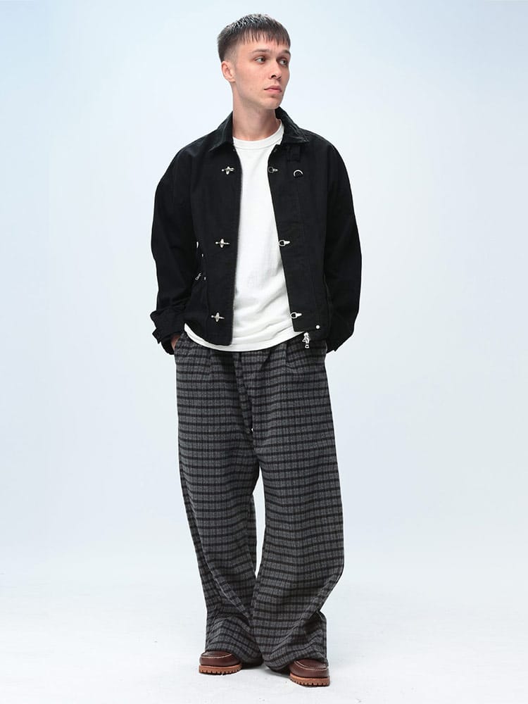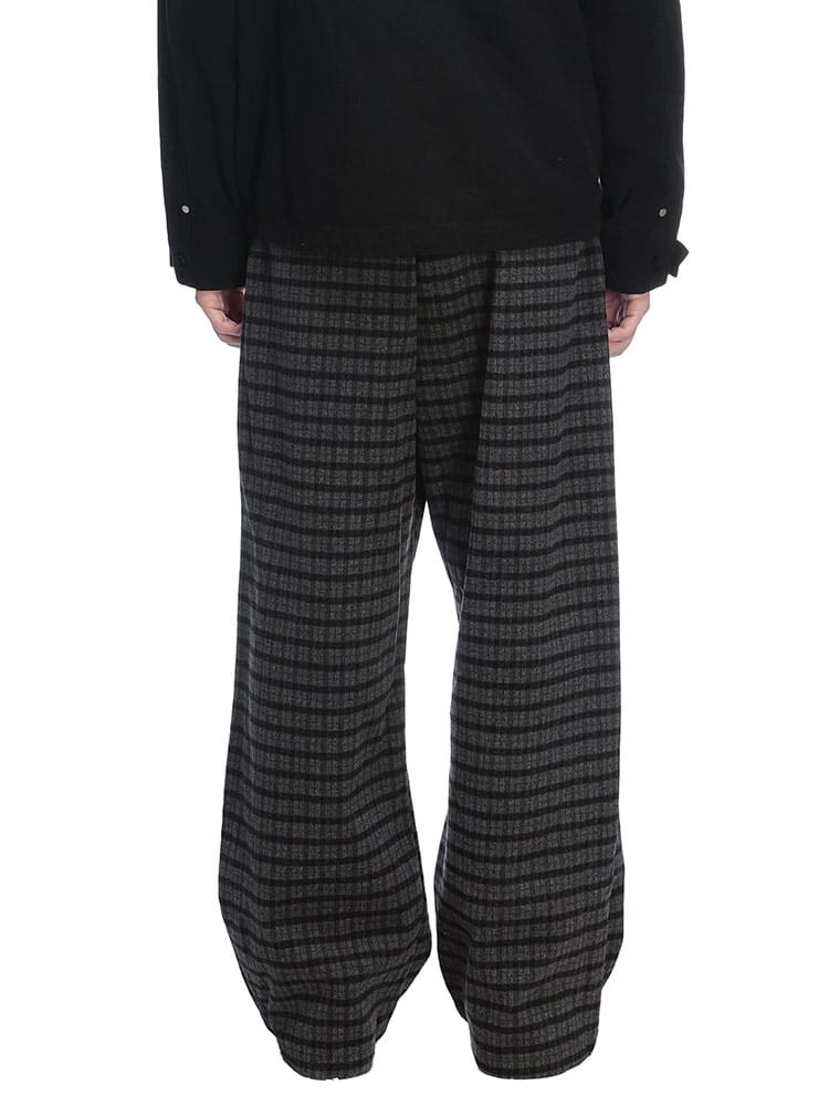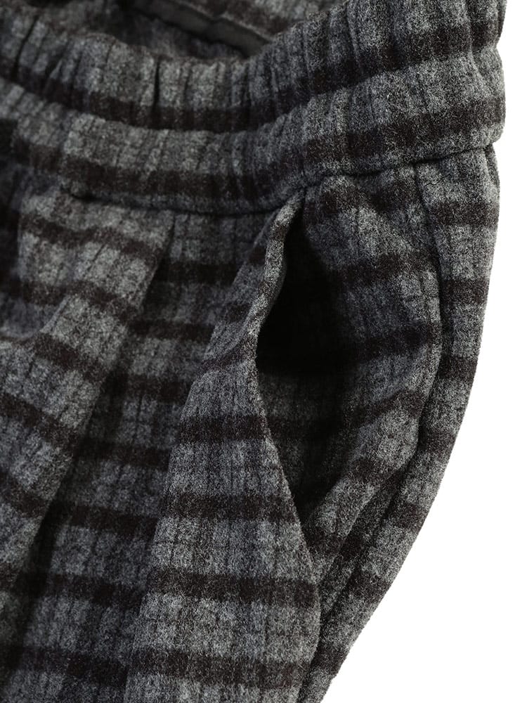 トレンド感と暖かさを両立するウール調 チェック柄 ワイドパンツが登場。ふっくらとしたウール調の素材に、クラシックなチェック柄をON。暖かみのあるルックスで、秋冬の着こなしに深みと洒脱なムードをプラスします。ゆったりとしたワイドシルエットは、穿くだけで旬のリラックススタイルが完成。快適な穿き心地を追求し、ウエストには調節ゴムとコードを装備。ベルトレスでイージーに着用できます。フロントは前閉じ仕様で、だらしなく見えないのもポイント。さらに外側ポケット2つ付きで実用性も確保しています。ニットやスウェットと合わせて、大人のカジュアルスタイルを楽しんでください。
