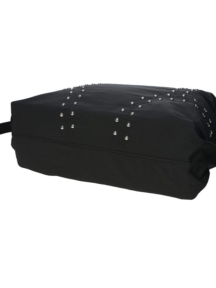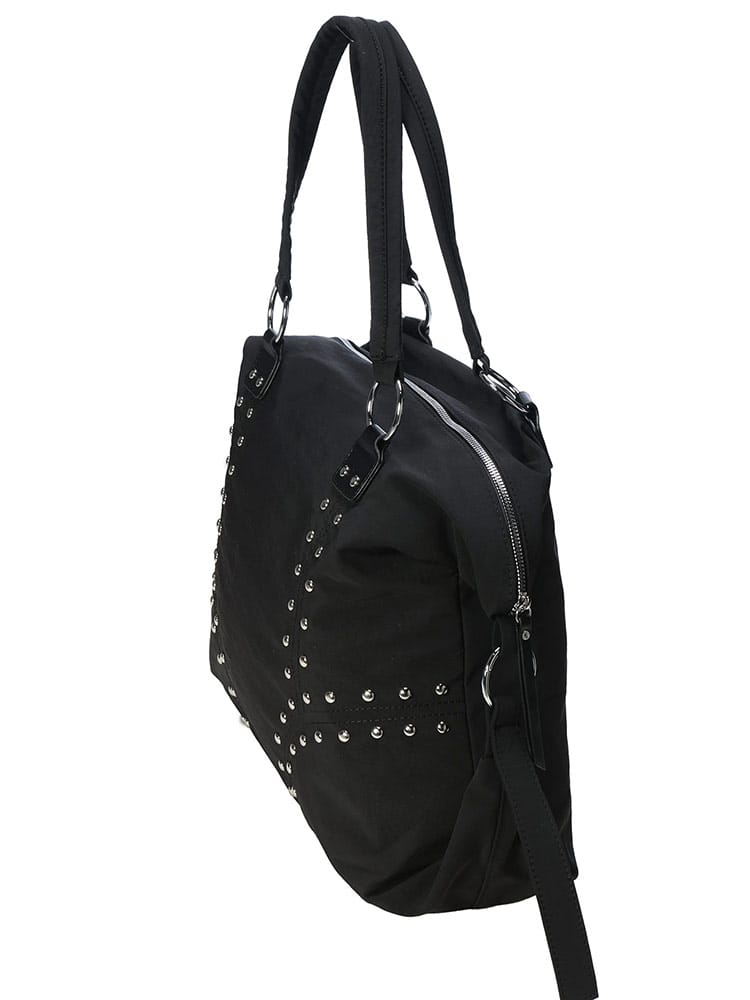 エッジの効いたスタイルを演出するスタッズ ボストンバッグが登場。クールな無地デザインに、無数のスタッズを散りばめることで、個性が光るロックテイストをプラス。一泊旅行からジム通い、デイリーユースまで、幅広いシーンで活躍する絶妙なサイズ感です。メイン収納口は開閉しやすいジップ仕様で、荷物の出し入れもスムーズ。内側にはジップポケット1つとオープンポケット1つを備え、小物も迷子になりません。手持ちだけでなく肩掛けも可能なデザインで、使い勝手も抜群。メンズ・レディース問わずユニセックスで使える、スタイリングの主役になるバッグです。