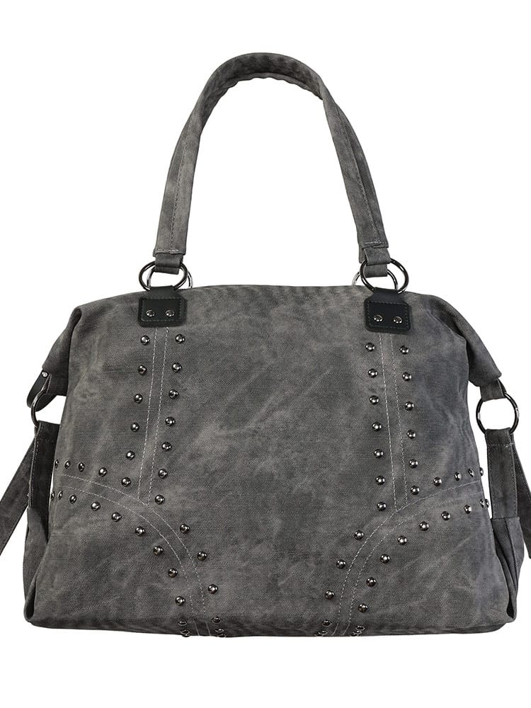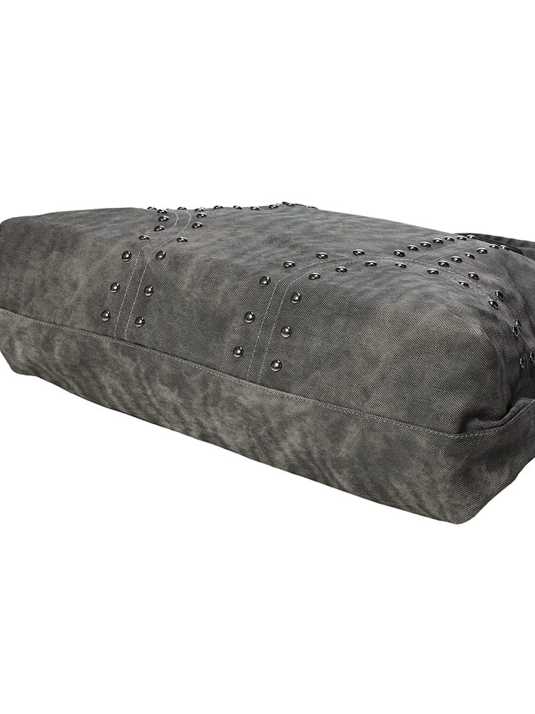 視線を集めるスタッズ ボストンバッグが登場!バッグ全体に施された総柄デザインと、エッジを効かせたスタッズの組み合わせが、個性的でロックなムードを演出。いつものコーディネートにプラスするだけで、ストリート感溢れるスタイリングが完成します。一泊旅行から普段使いまで対応できる、使いやすいサイズ感も魅力です。メイン収納口は荷物をしっかり守るジップ仕様。内側には貴重品の収納に便利なジップポケットが1つあり、機能性もバッチリです。手持ちに加え、肩掛けも可能なデザインで持ち運びもスムーズ。メンズ、レディース問わず、ユニセックスで使える主役級のバッグです。