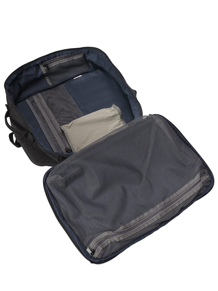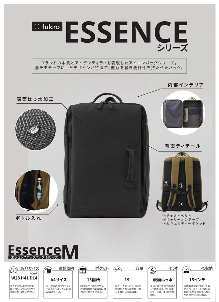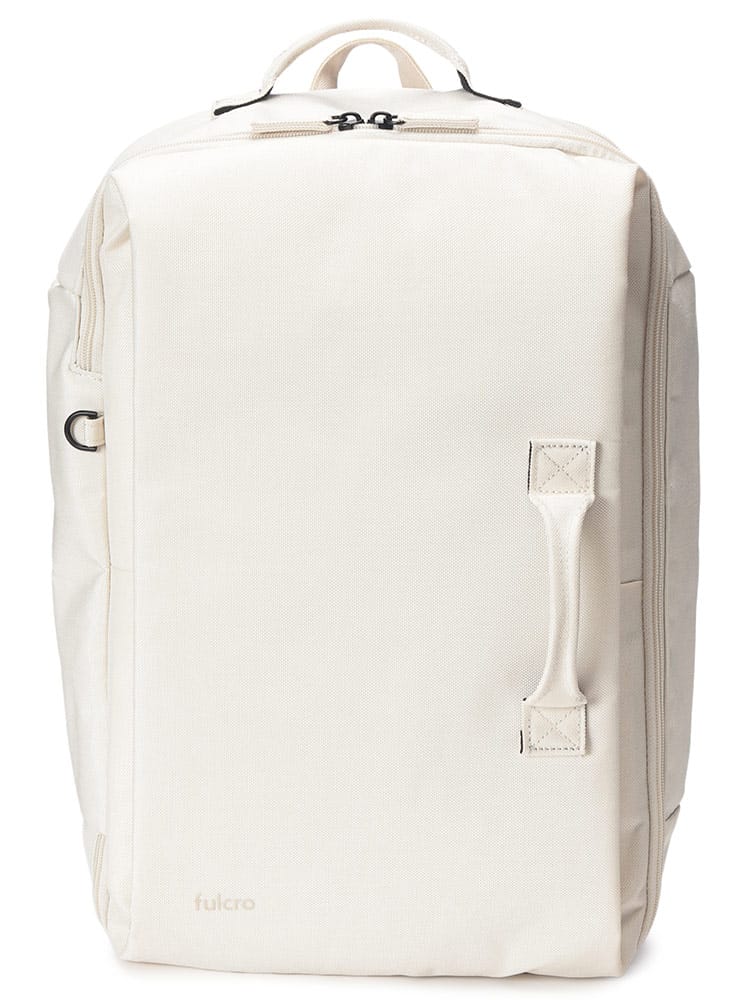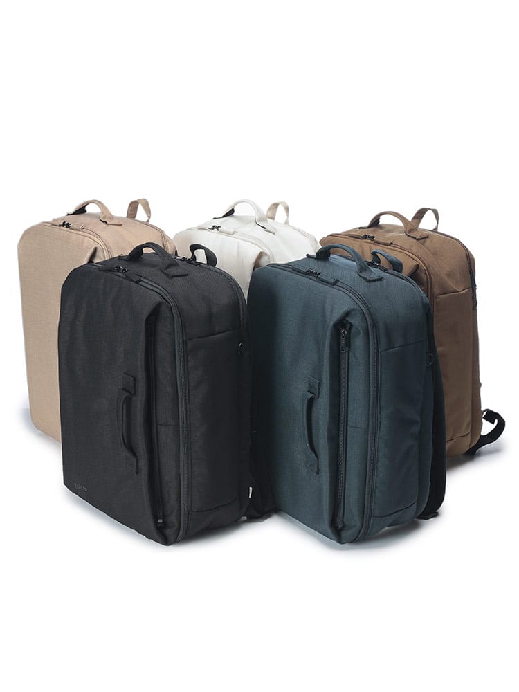 1泊2日の荷物をリュック一つでスマートに。ブランドのアイコニックとなる横開き仕様のリュック。大きなメッシュポケットは、荷物を可視化。立ったままでも荷物を取り出しやすいよう、ファスナーの始まり位置にもこだわっている。荷物が少なくても型崩れせず、自立する設計はどんな時もスタイリッシュ。