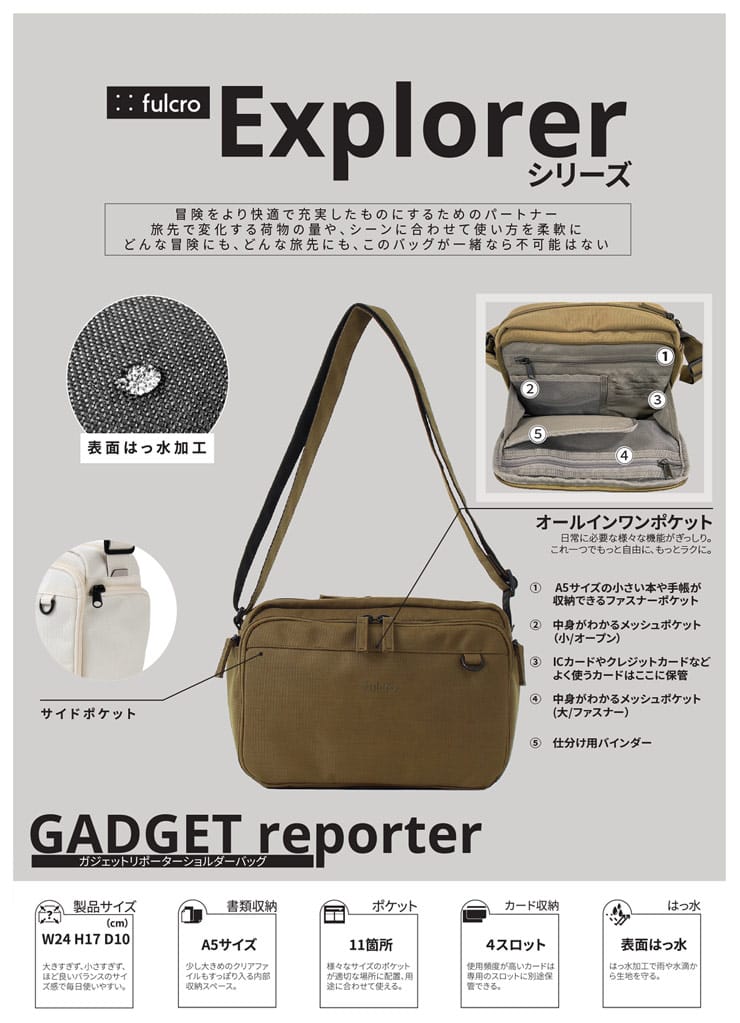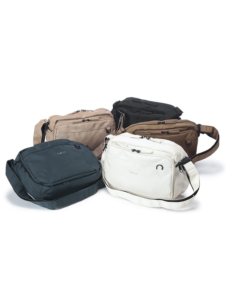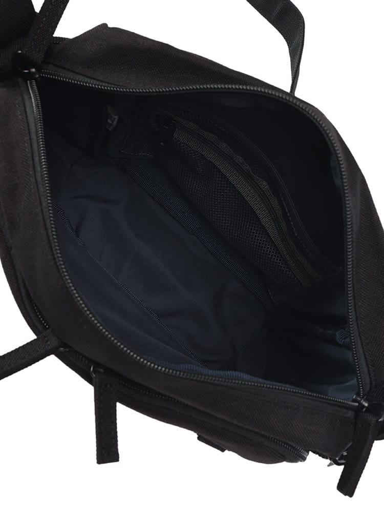 見た目以上の高機能。A5サイズのメイン収納に様々なサイズのメッシュポケット。適材適所にあるファスナーポケットや、カードスロットは旅先で便利なお財布機能に。