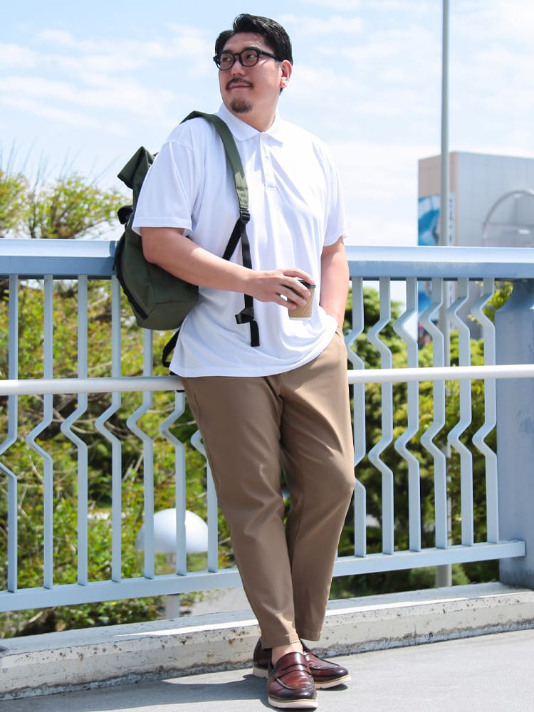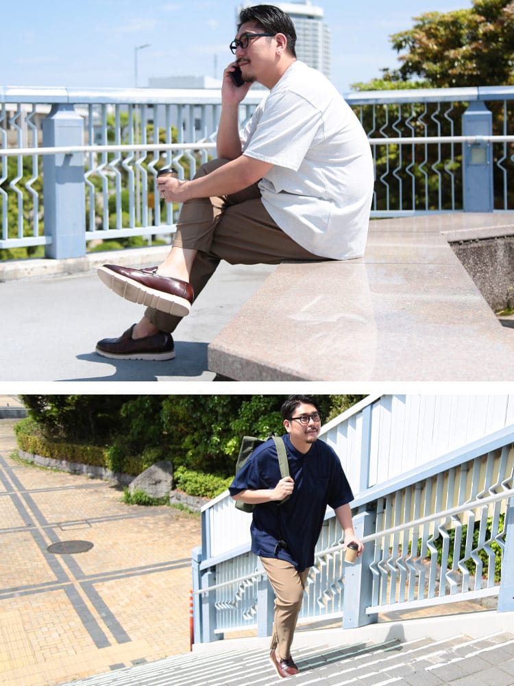 身長:195cm / B:120 / W:109 / H:116 / S:31.0cm 着用サイズ:5L (ブラック/ベーシュ/ネイビー) 2L(カーキ)