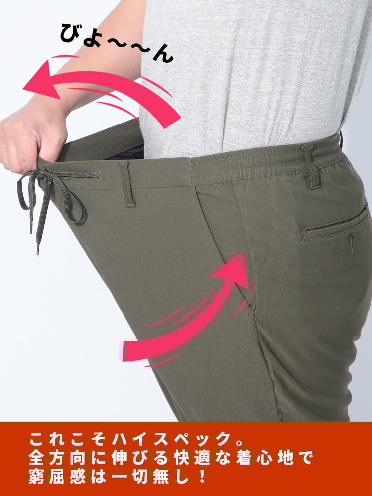 ウエストはゴム+ドローコード仕様&ジップフライ付きで、きちんと感はキープしつつ、イージーな穿き心地。