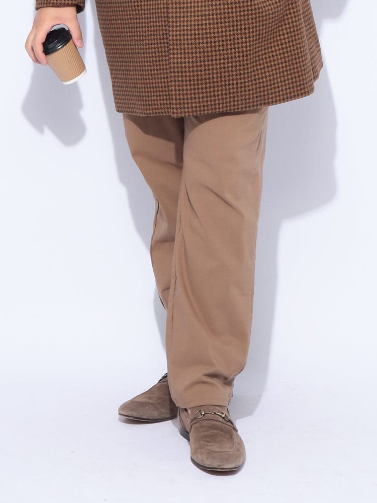 温もりと快適性を両立させた、B&T CLUBのACTIVE WARM チノパンツ。裏面は肌触りの良い裏起毛素材で、足を通した瞬間から暖かさに包まれます。寒い季節の外出も、これ一本で快適に過ごせます。ウエストはドローコード付きのゴム仕様で、リラックスした穿き心地。見た目はすっきりとしたノータックのチノパンツで、カジュアルすぎないのが魅力です。さらに、ストレッチが効いているので、どんな動きもスムーズ。長時間の着用でも疲れにくく、ゴルフや旅行、アクティブなシーンにも最適です。シワになりにくいイージーケア仕様で、お手入れも簡単。機能性、暖かさ、スタイルを兼ね備えた、冬のワードローブに欠かせない一本です。