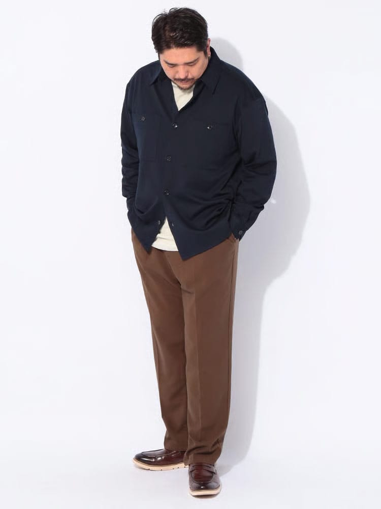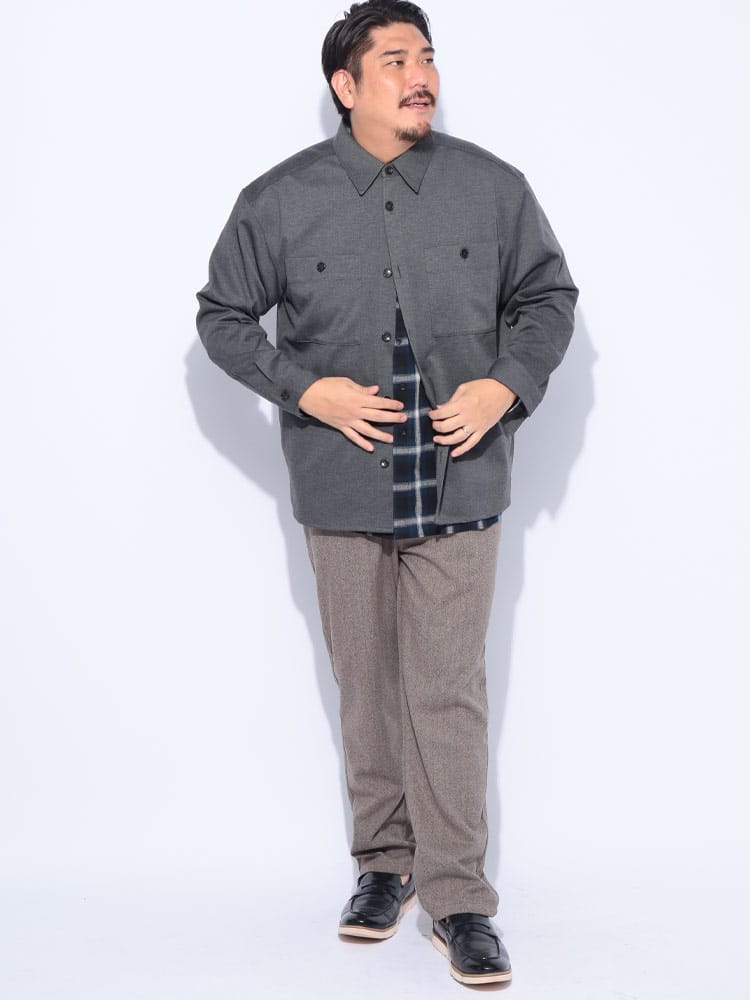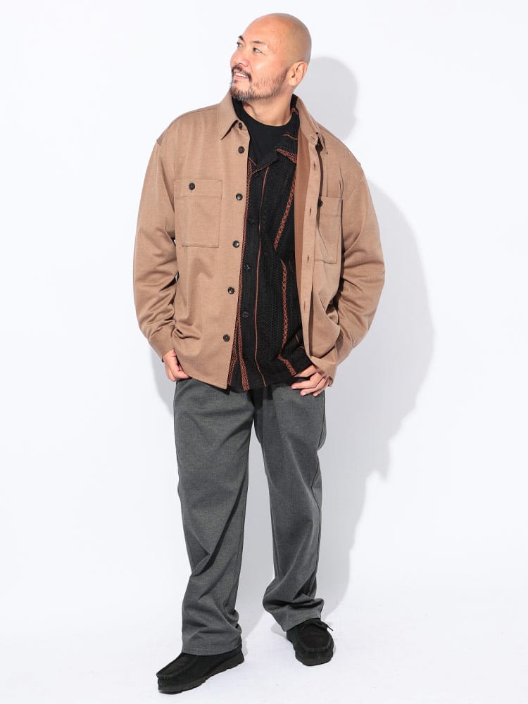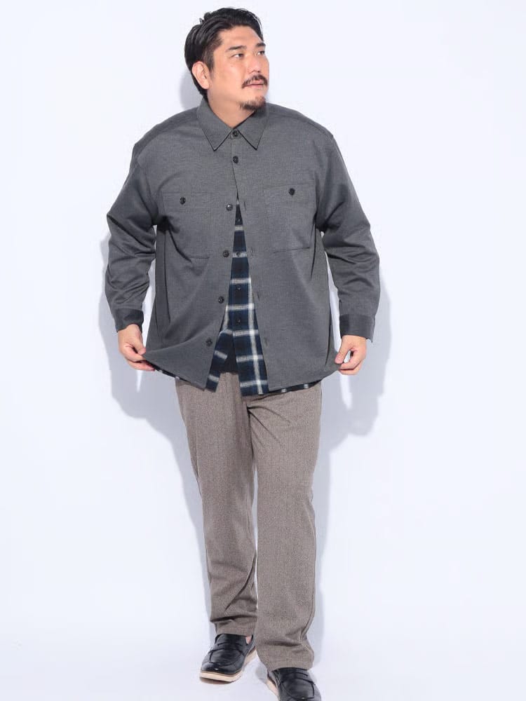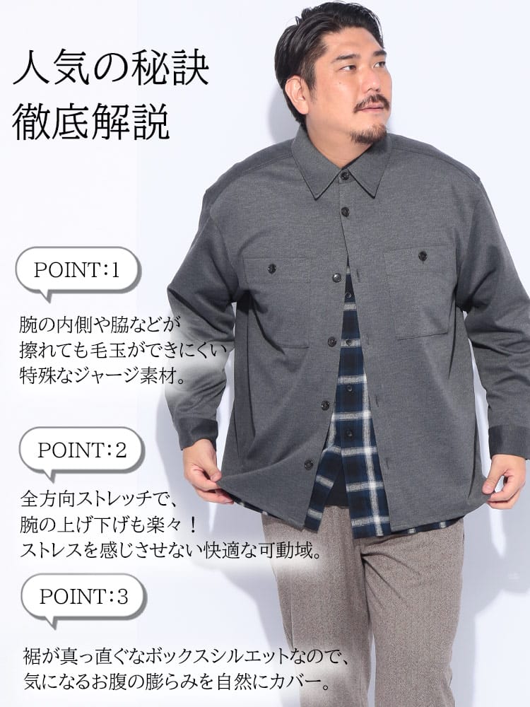 特殊なジャージ素材を使用することで、ウールのような上品な起毛感がありながら、摩擦による毛玉ができにくい仕様を実現しました。腕の内側や脇など、大きいサイズの方が特に気にする「こすれ」にも強く、常に清潔感のあるクリーンな印象をキープします。
