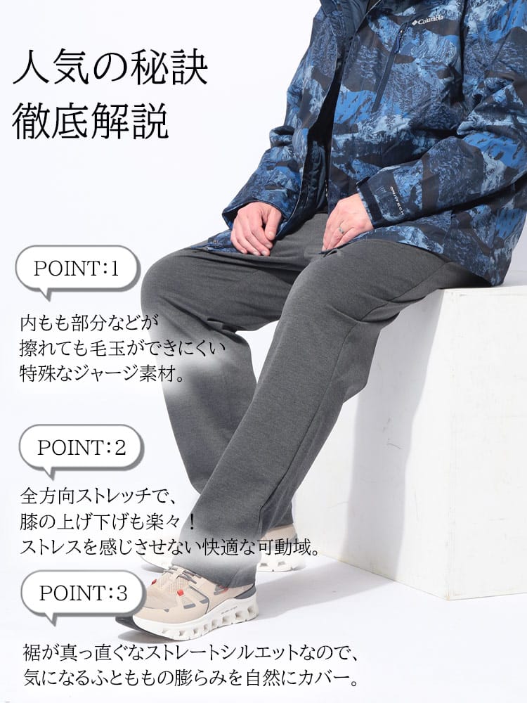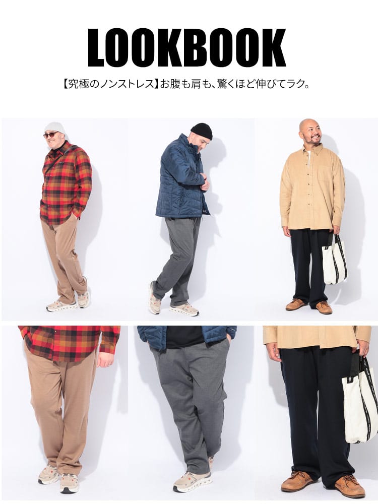 仕様 :外側ポケット数×4つ / ワンタック / サイドウエストゴム / ジップフライ / ストレッチ