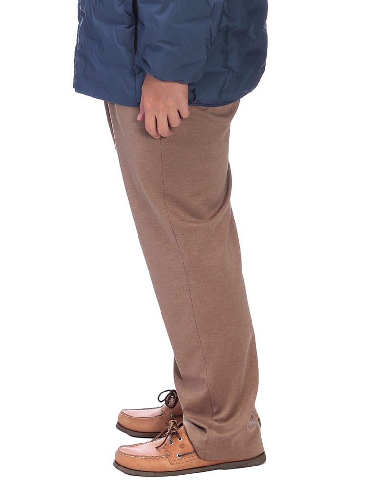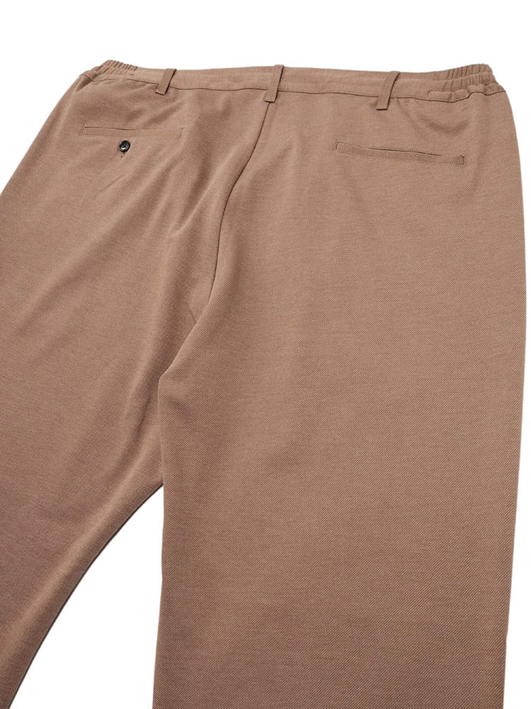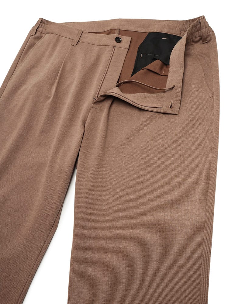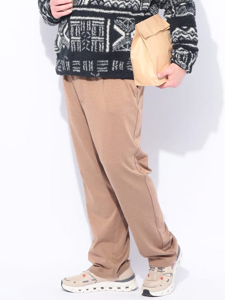 B&T CLUB ACTIVE WARM JERSEY タックワイドイージーパンツ。暖かく柔らかなアクティブウォームジャージー素材を使用し、寒い季節も快適に過ごせます。ワンタックとワイドシルエットでトレンド感を演出しつつ、サイドウエストゴムとストレッチ素材で穿き心地も抜群。ビジネスカジュアルからきれいめカジュアルまで幅広く対応し、機能性とスタイルを両立した一本です。