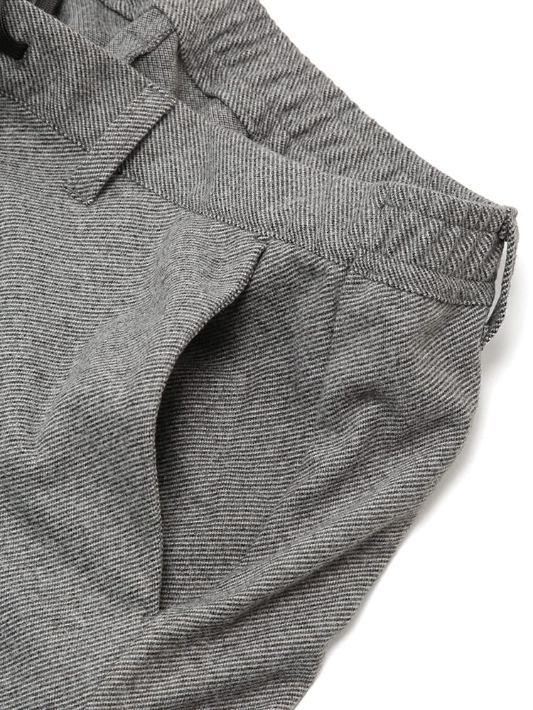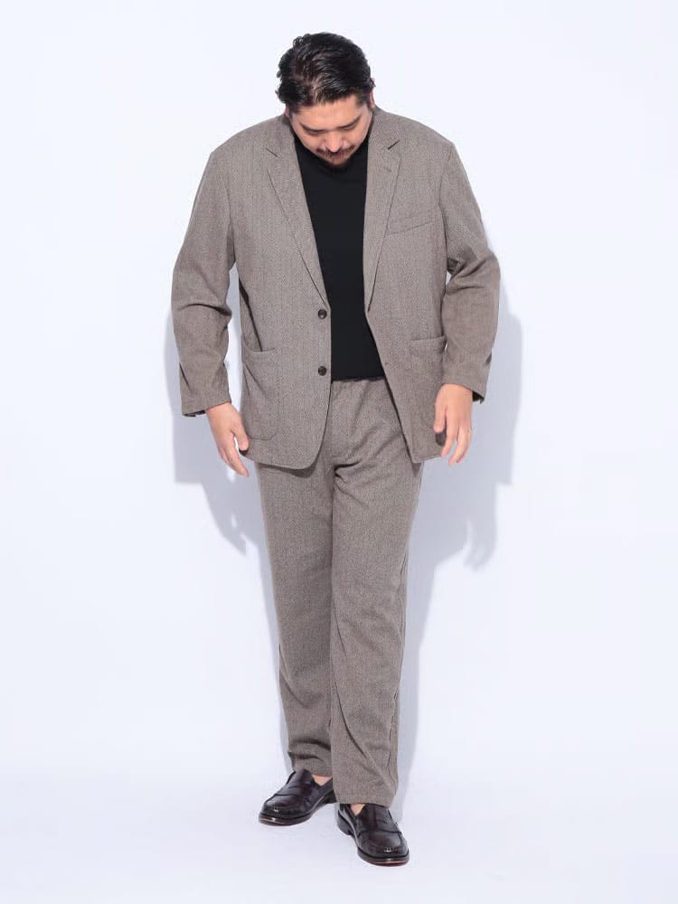 見た目は上品なウール、着心地は軽やかなイージーパンツ。B&T CLUBの「ACTIVE WARM WOOLLY」は、ストレッチ性のある素材で動きやすく、暖かな穿き心地です。ウエストはゴムとドローコードで調節でき、ノータックのスッキリとしたシルエットが特長。休日からビジネスシーンまで、幅広く活躍します。