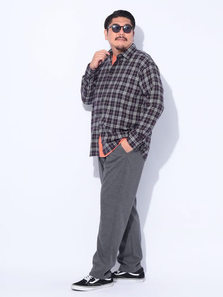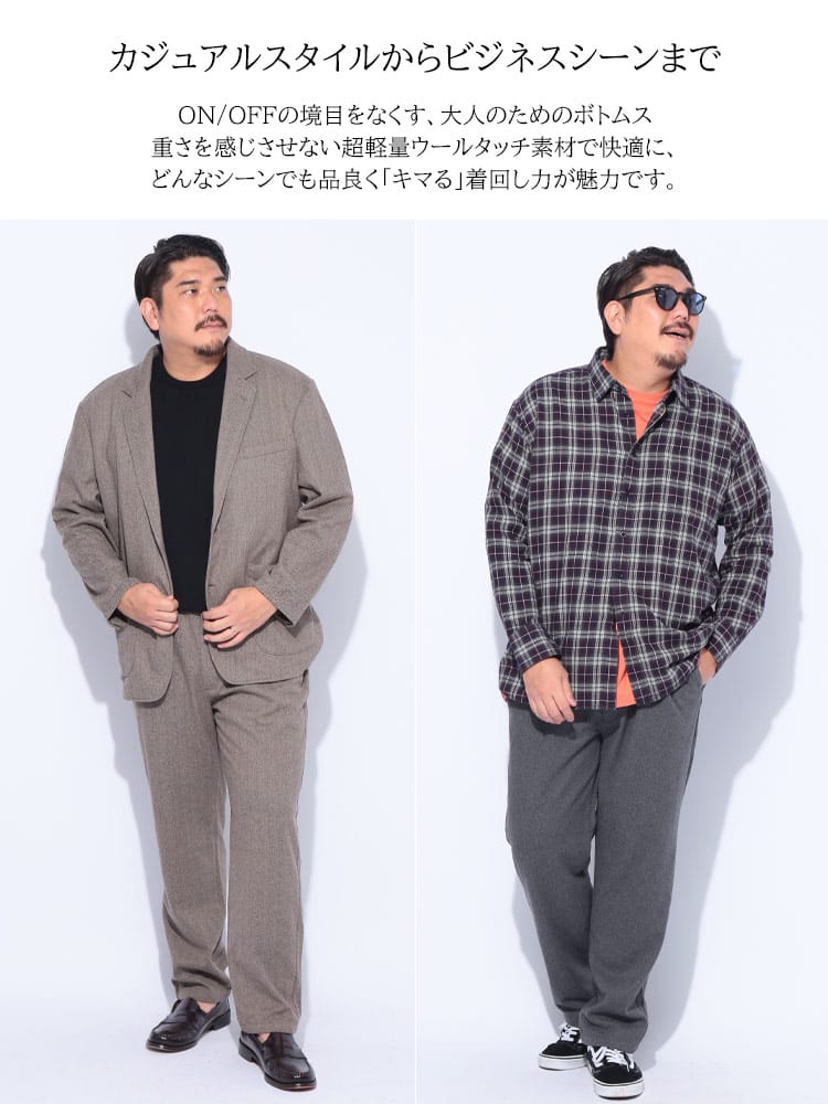 仕様 :ストレッチ / イージーケア / ウールタッチ / 外側ポケット数×4つ / ジップフライ / ウエスト調節ゴム